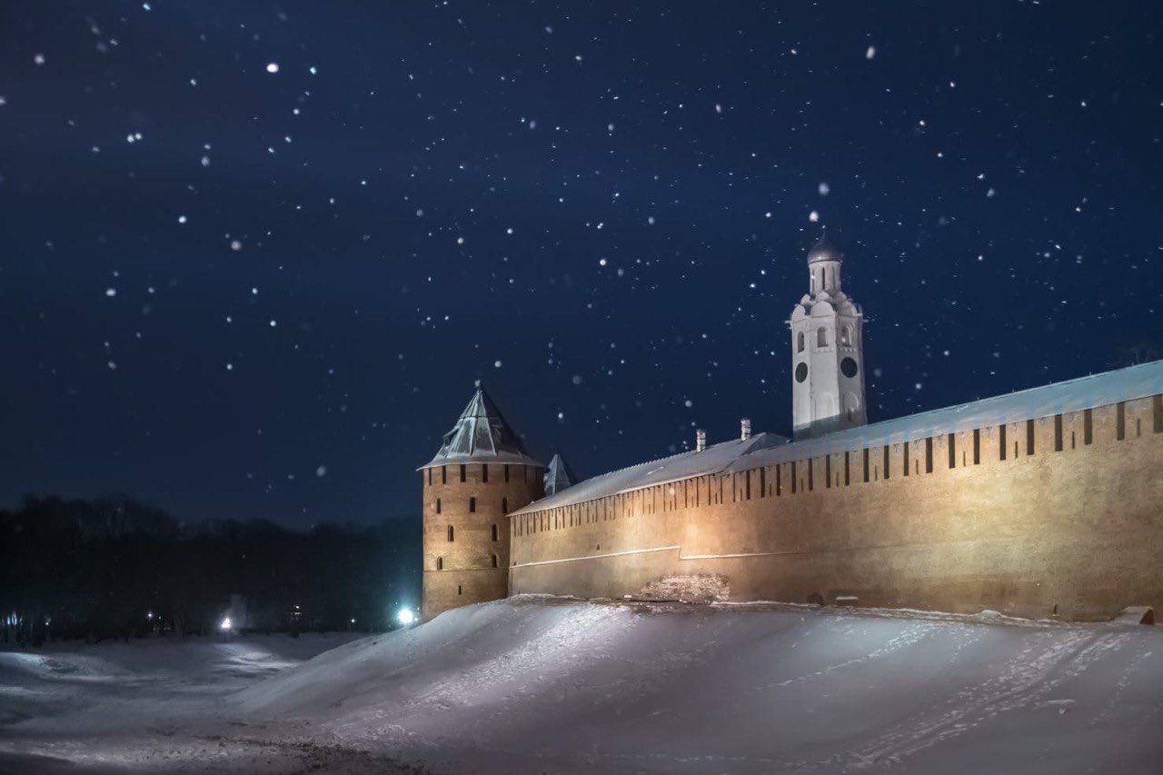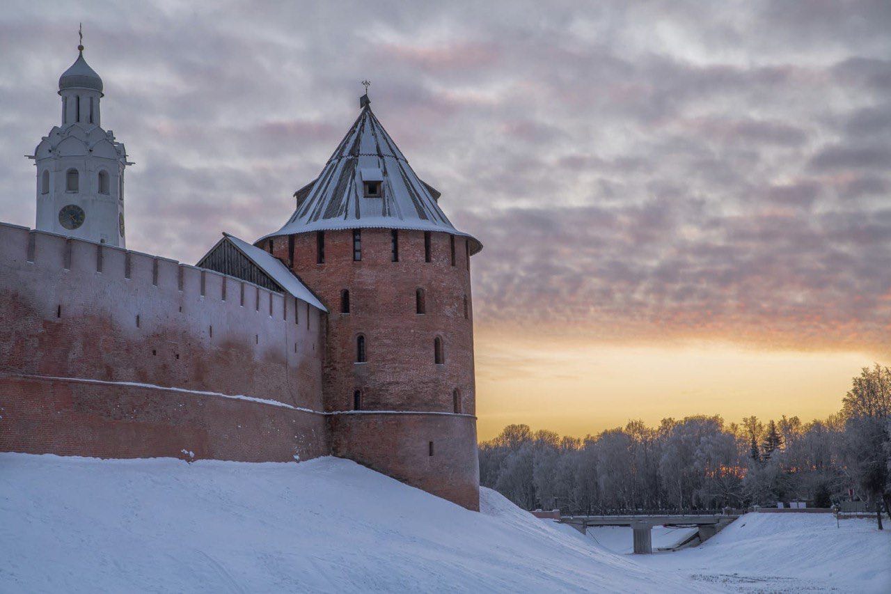 Первое летописное упоминание о Новгородском кремле относится к 1044 году. Он был основан князем Владимиром, сыном Ярослава Мудрого. Сохранившиеся каменные стены относятся в основном к концу XV века.