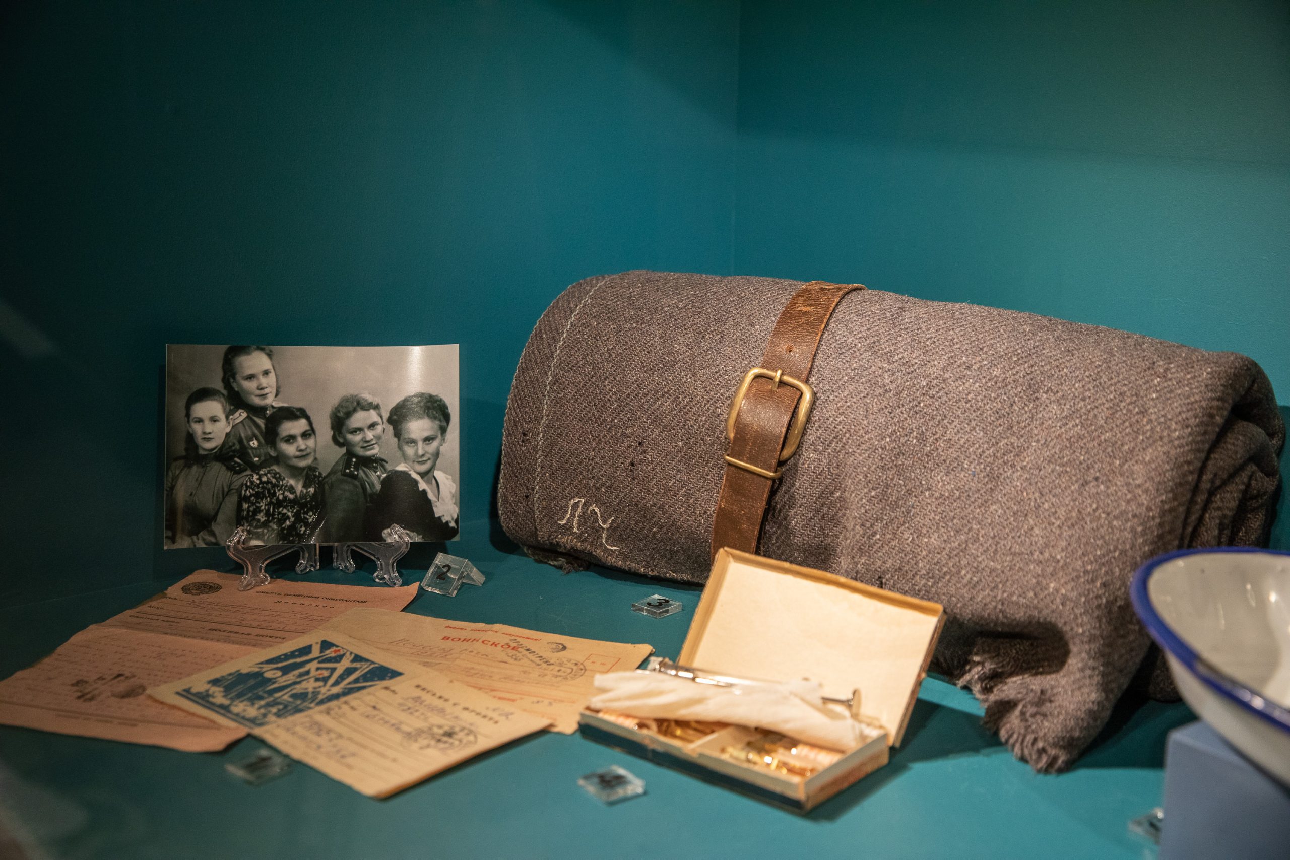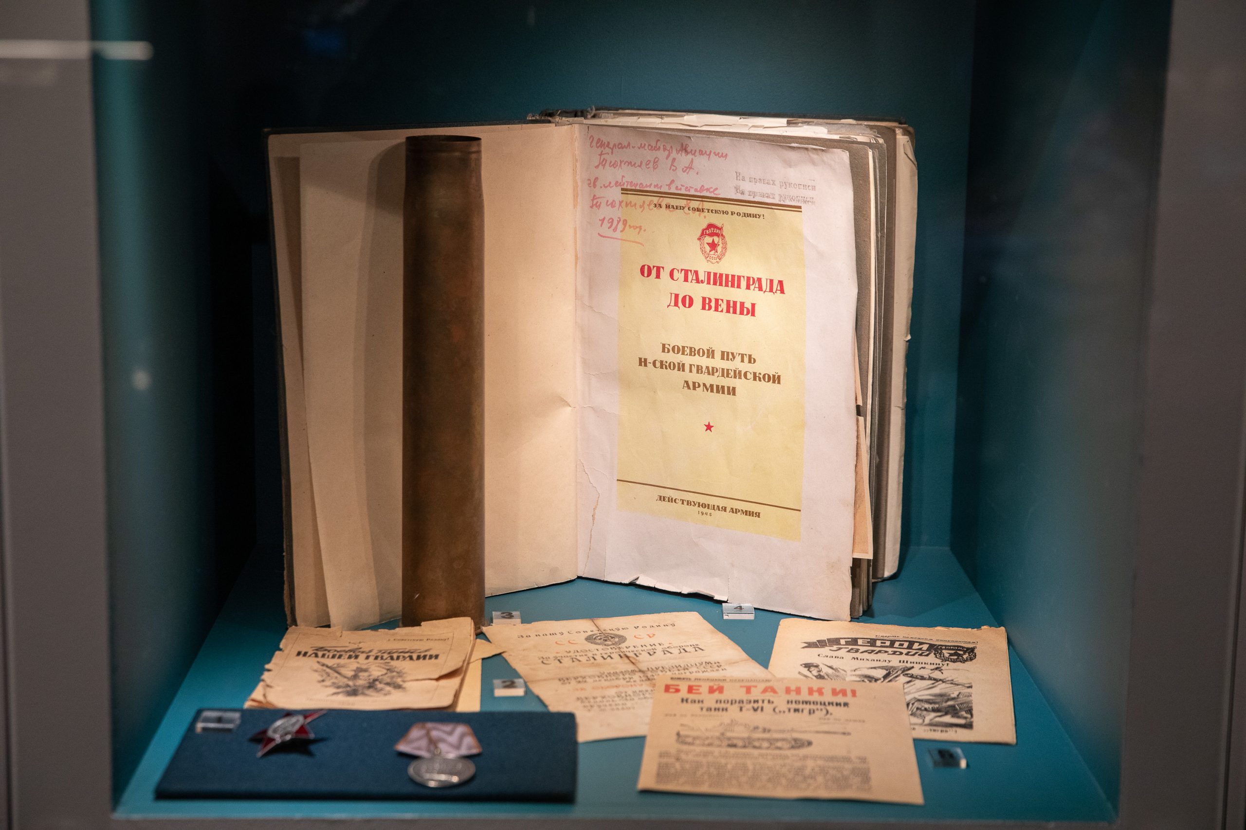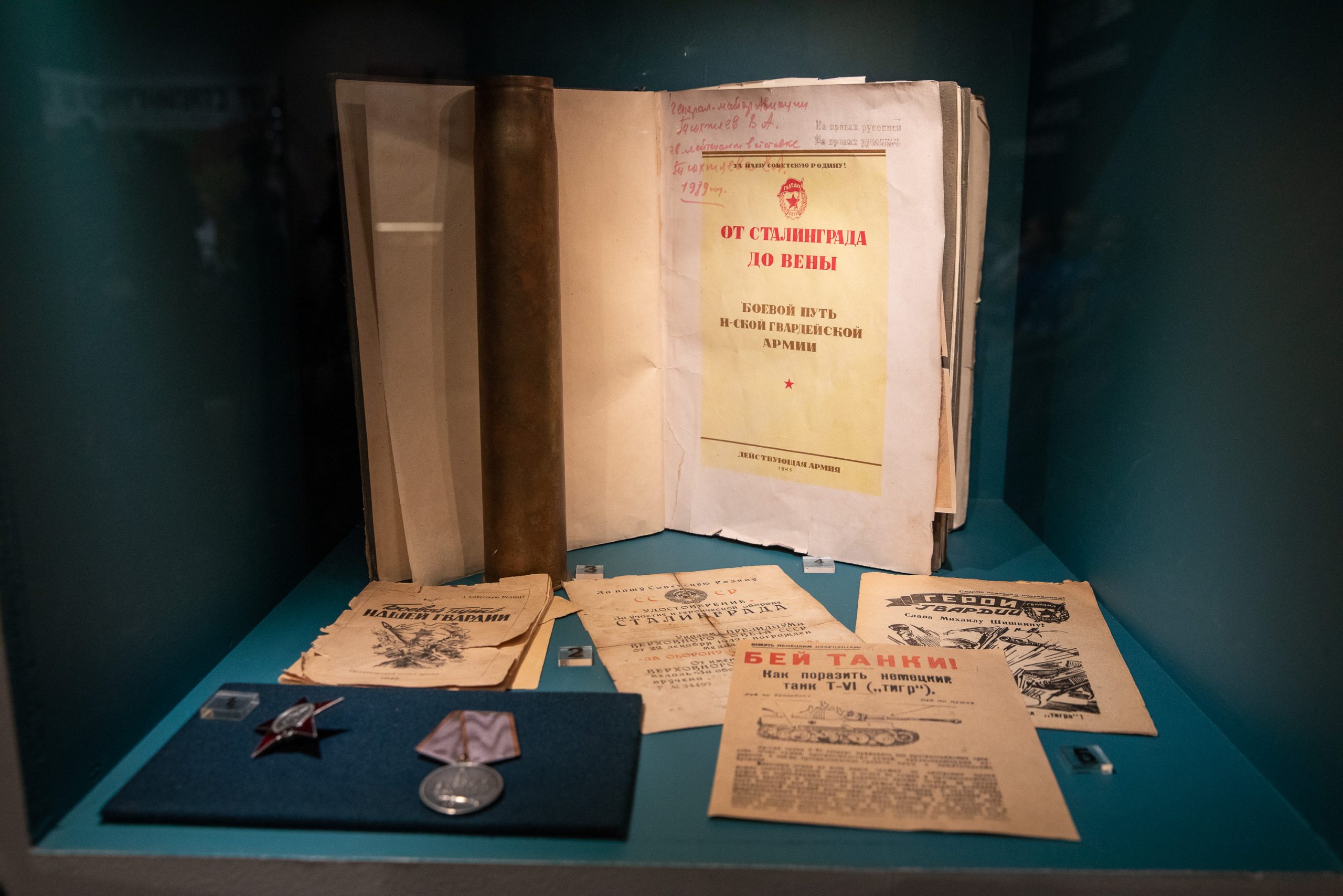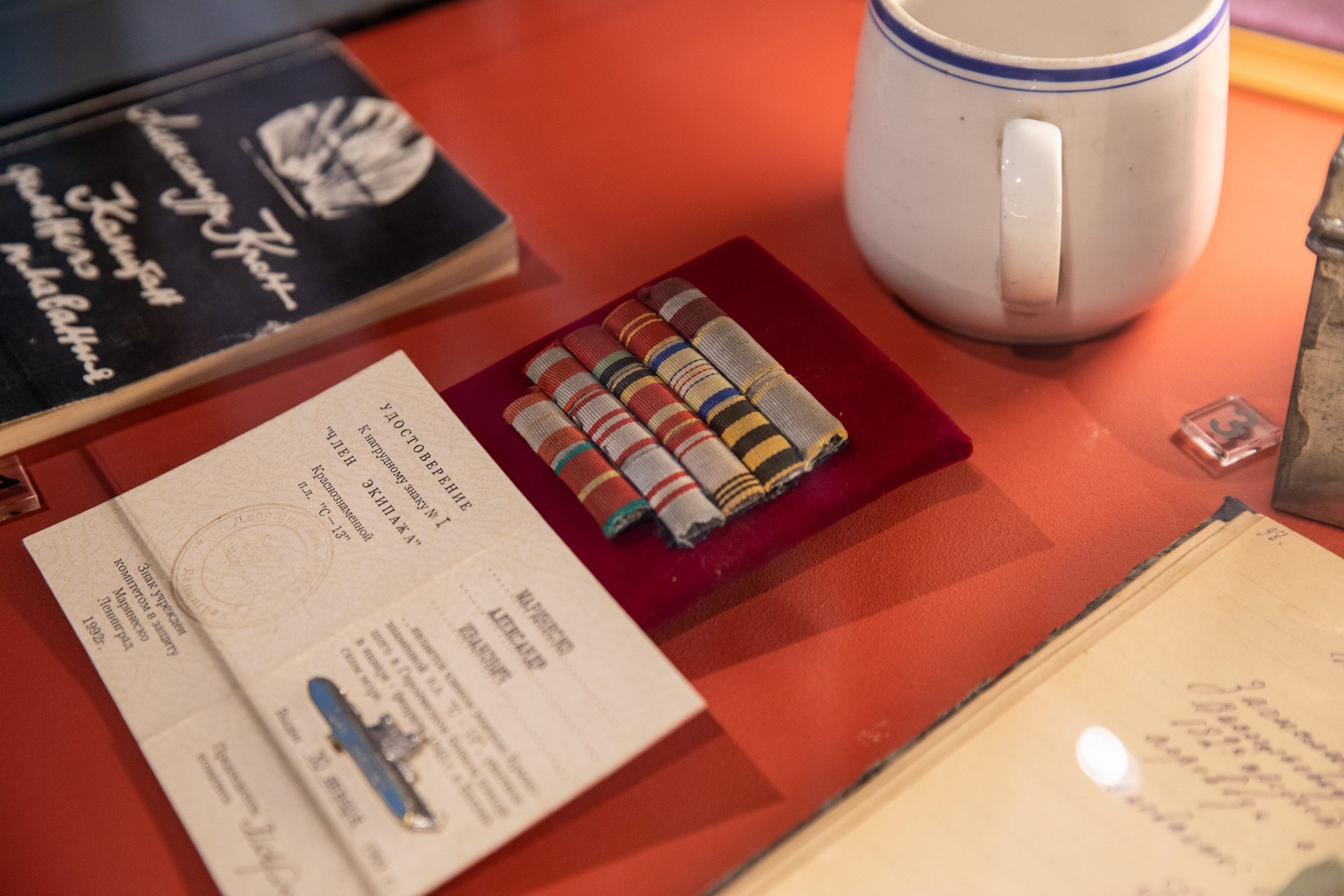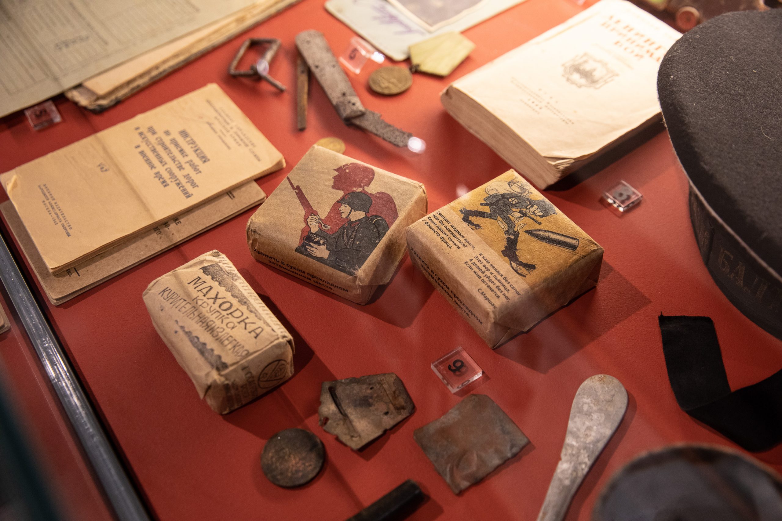 Среди уникальных экспонатов - смертный медальон бойца Красной Армии Сергея Николаевича Россохина, погибшего на Невском пятачке, и медаль «За оборону Ленинграда».