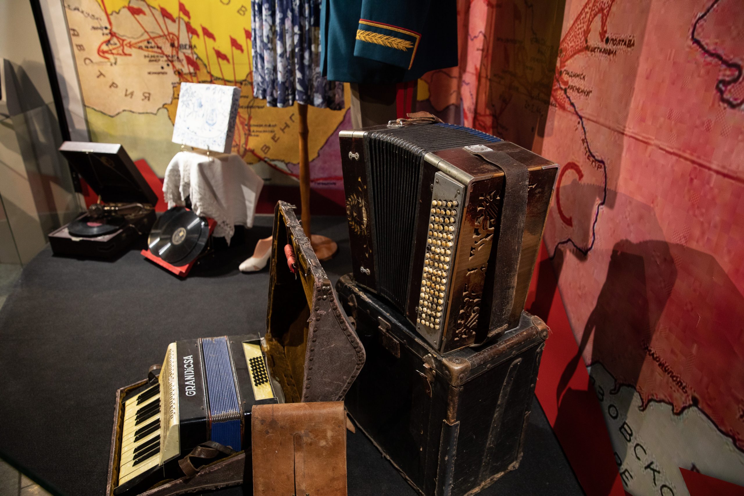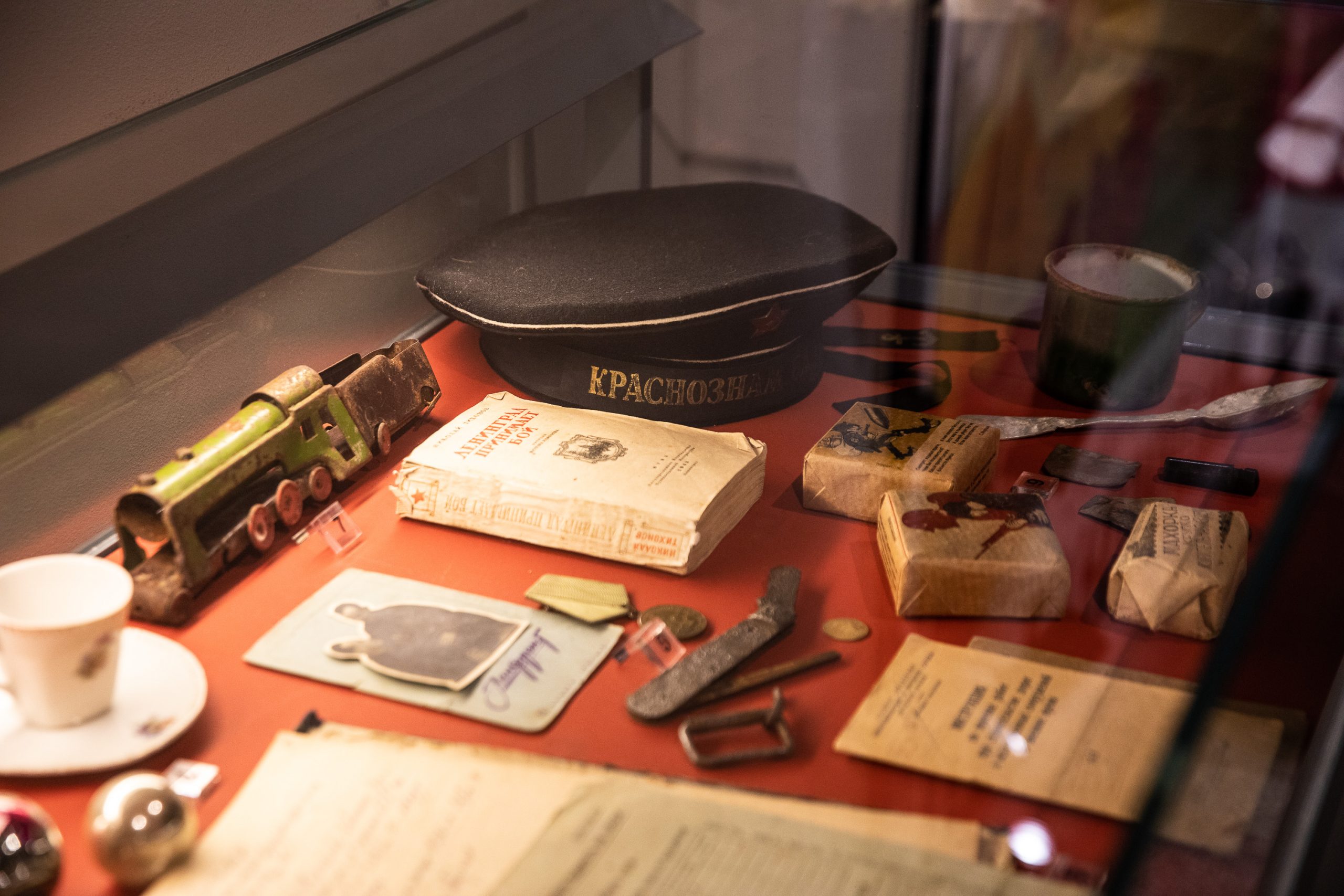В экспозиции представлены элементы вооружения и обмундирования защитников Ленинграда и сохранившиеся предметы быта ленинградцев и фронтовиков.