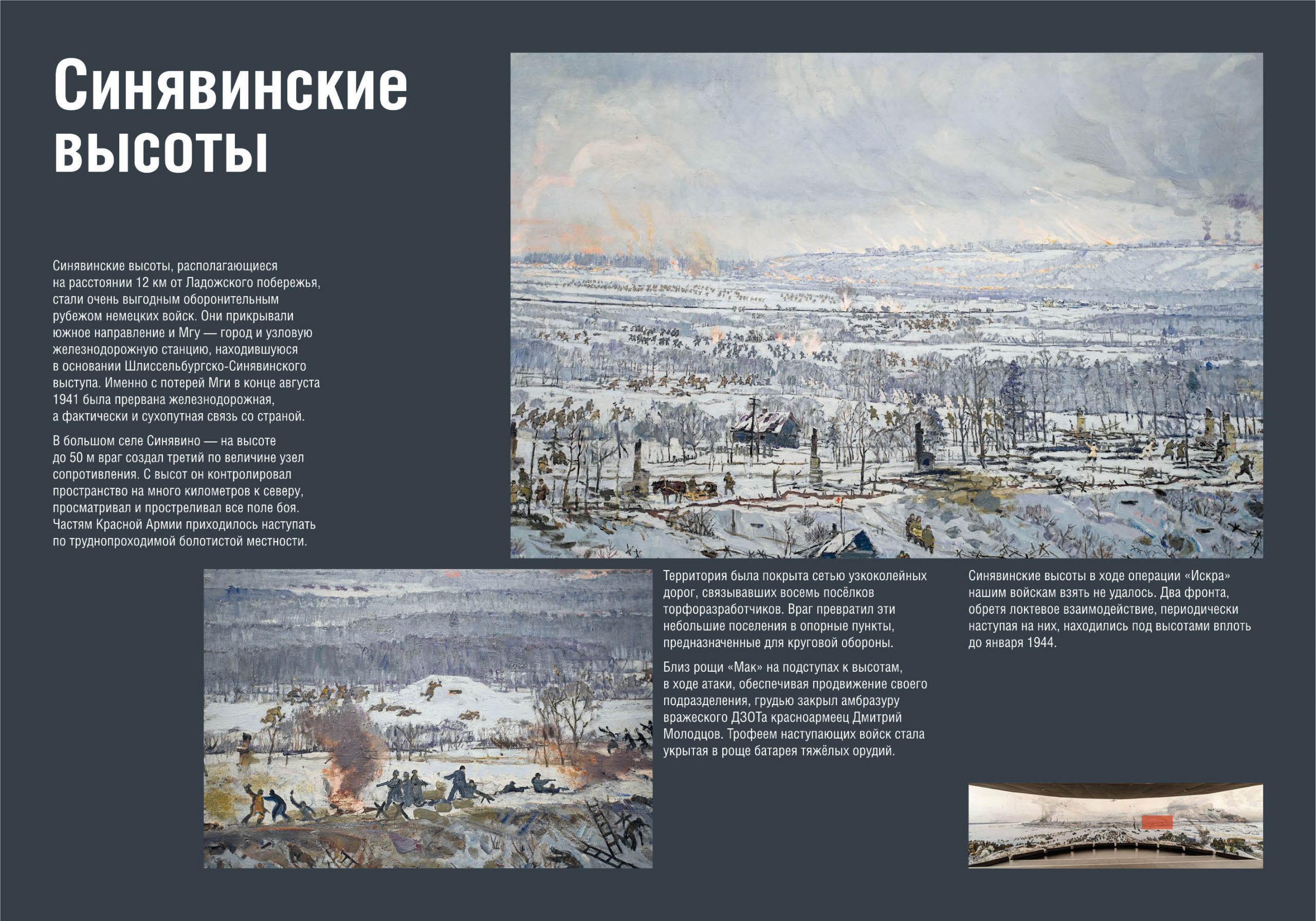 В экспозиции представлено около 150 оцифрованных материалов. Среди них: документы, фотографии, плакаты, рисунки фронтовых художников из фондов Музея Победы, снимки, сюжеты диорамы «Прорыв блокады Ленинграда» и трехмерной панорамы «Прорыв», предоставленные музеем-заповедником из Ленинградской области. Материалы рассказывают об этапах уникальной военной операции «Искра», подготовленной в обстановке чрезвычайной секретности и проведенной в сжатые сроки, о подвигах участников сражения.