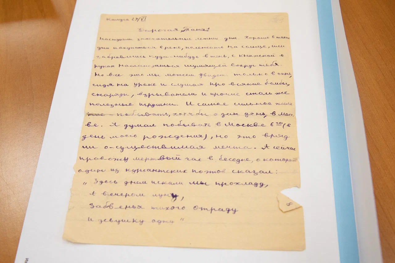 «Часто мы видим короткие фронтовые письма: «Здравствуй, дорогая! Я жив-здоров». А эти письма – очень литературные и увлекательные», – рассказала главный хранитель Музей Победы Наталия Засковец.