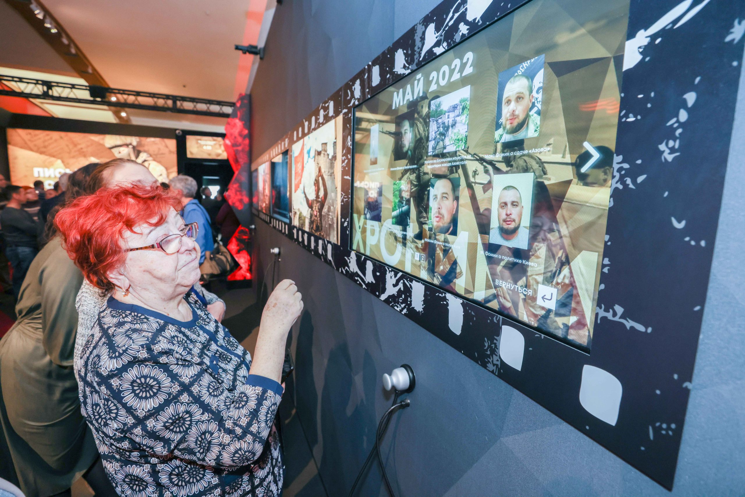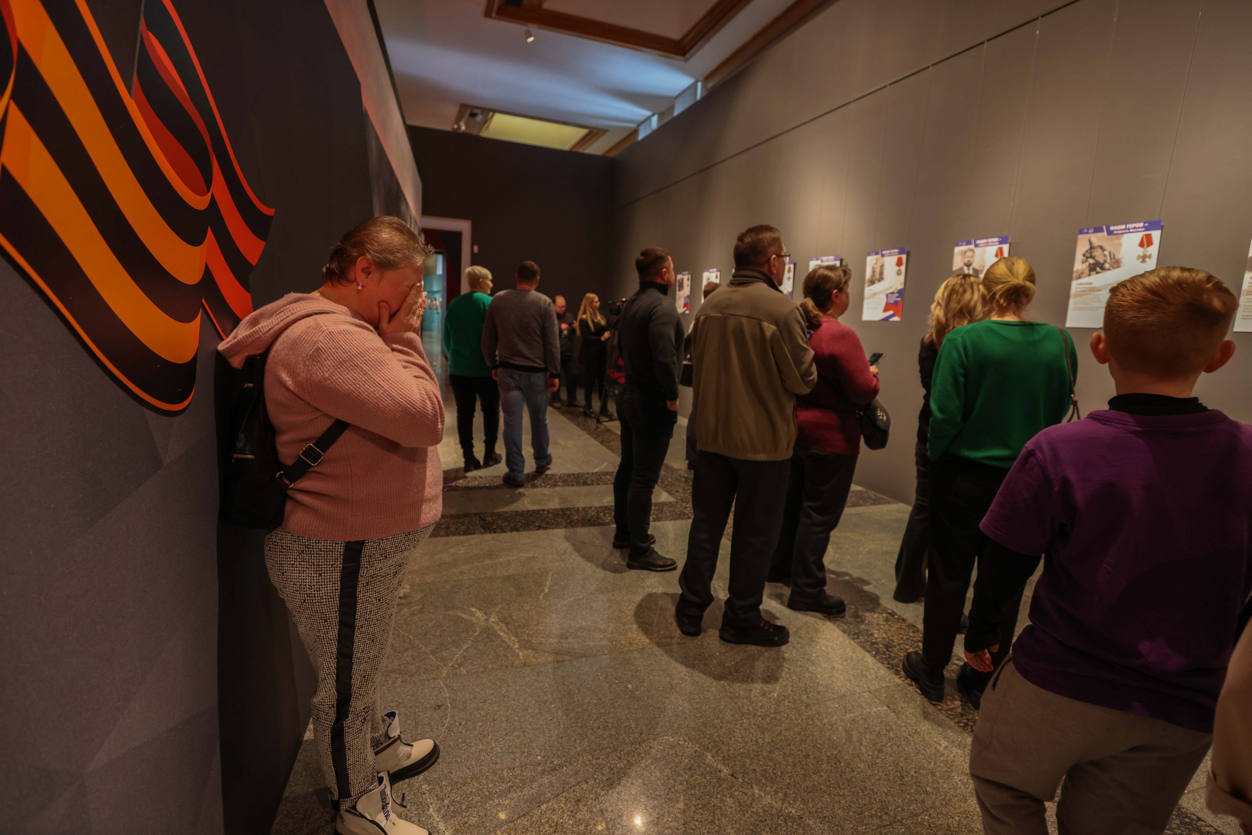 На выставке представлены фотографии с портретами участников СВО и кратким описанием их подвигов. Экспозицию пришли осмотреть сами герои событий в Донбассе, причем многие пришли с семьями или друзьями. Также выставку посетили и родственники погибших воинов – родители, вдовы, дети.