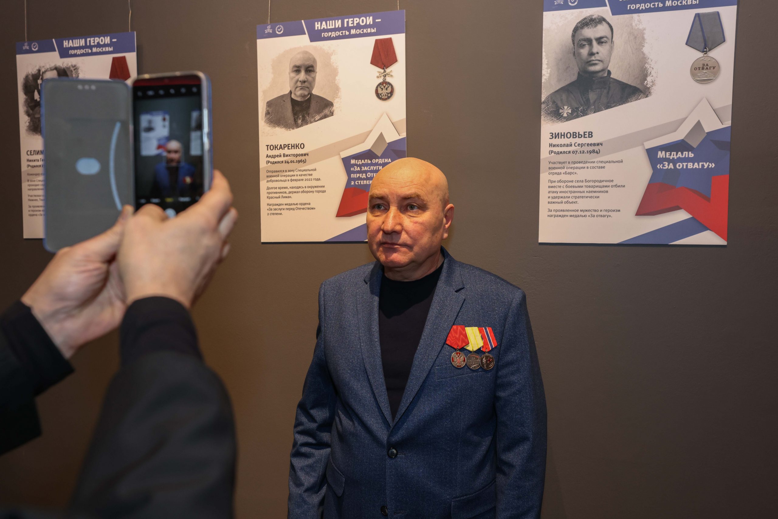 В Музее Победы в рамках акции «Память Героев» открылась выставка «Наши Герои – гордость Москвы», посвященная участникам специальной военной операции по денацификации и демилитаризации киевского режима. Посетителям представлены фотографии воинов, награжденных орденами и медалями за боевые заслуги, в том числе посмертно.