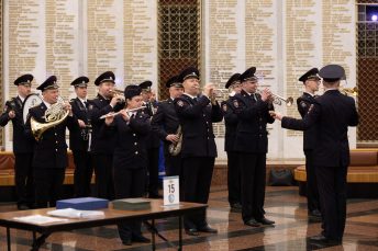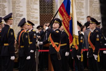 Курсанты возложили цветы к мемориалу в Зале Памяти и Скорби. Затем в Зале Славы состоялось вручение дипломов и торжественная церемония прощания со знаменем колледжа.