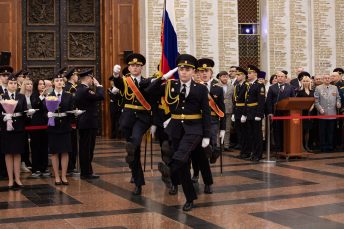 В Музее Победы состоялся выпуск курсантов столичного колледжа полиции. В торжественной церемонии приняли участие 425 выпускников.
