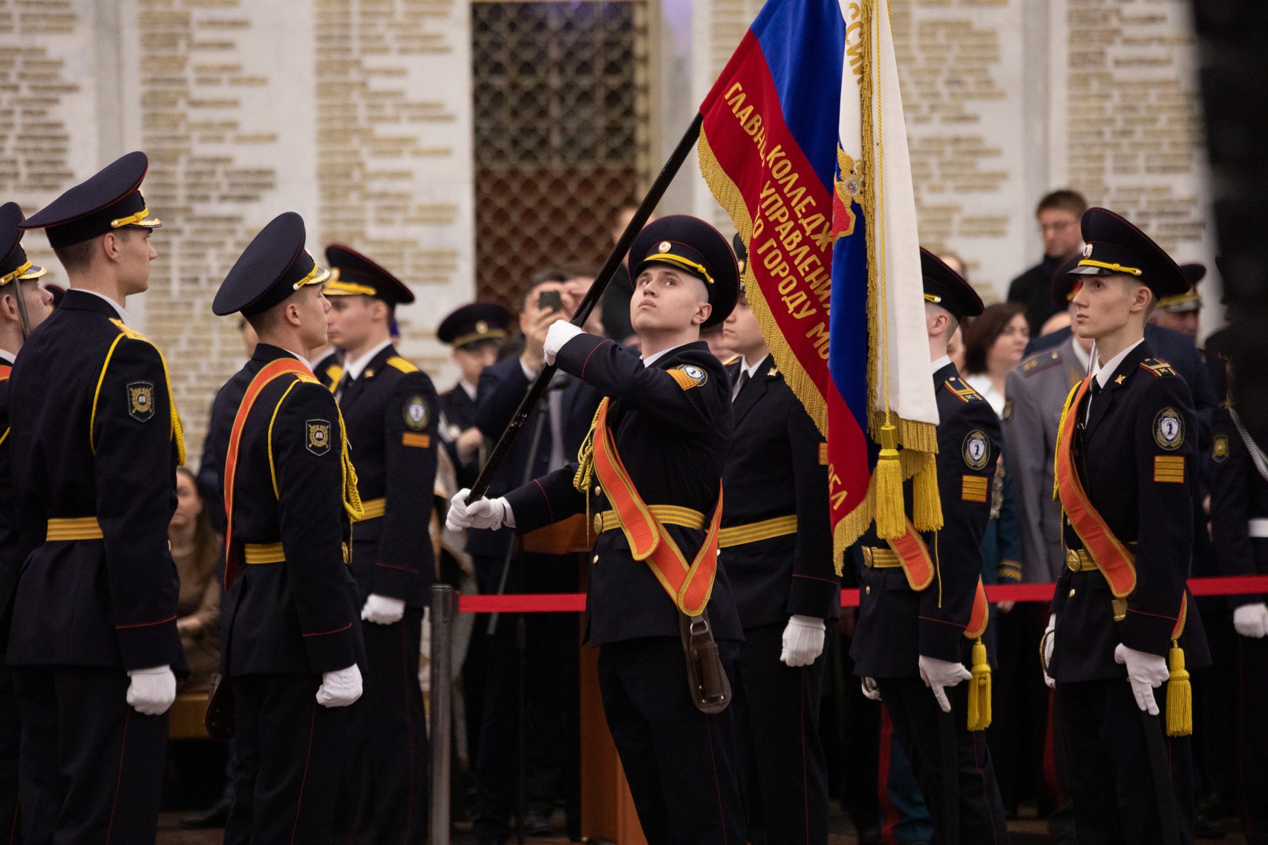 В Музее Победы состоялся выпуск курсантов столичного колледжа полиции. В торжественной церемонии приняли участие 425 выпускников.