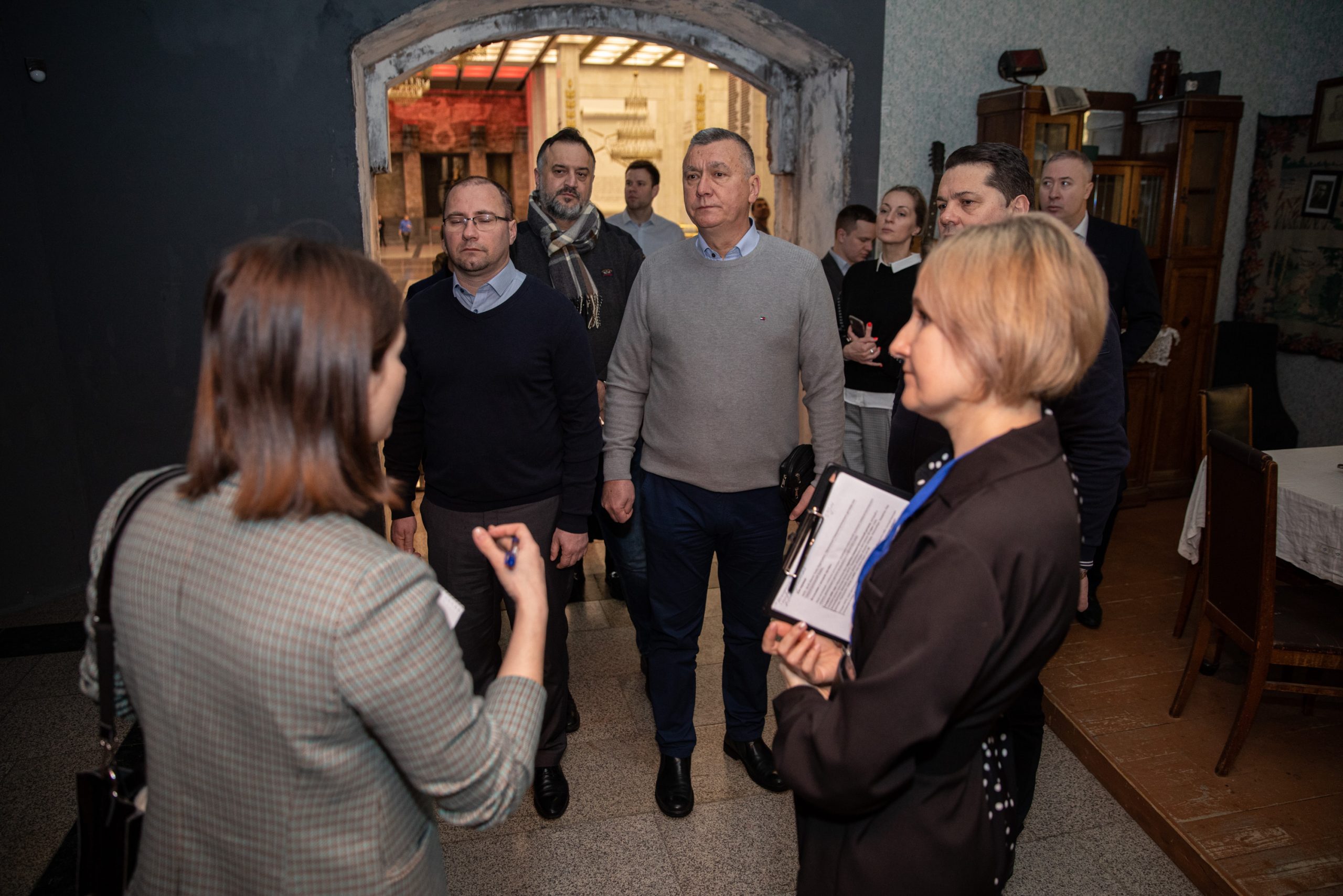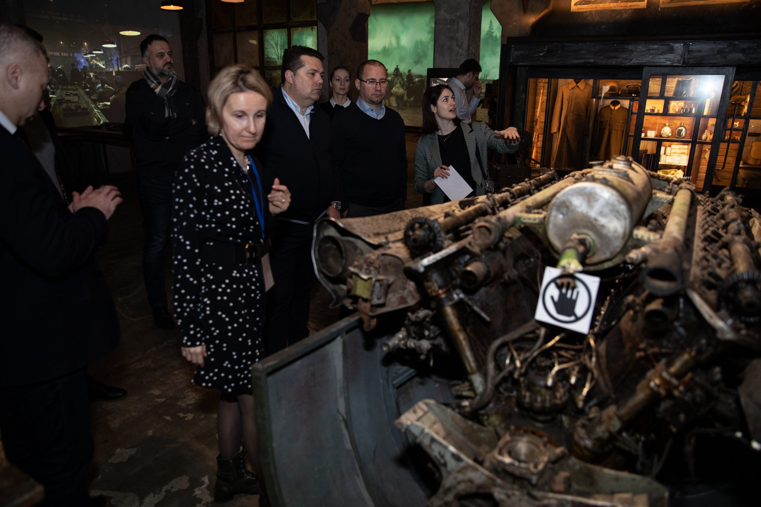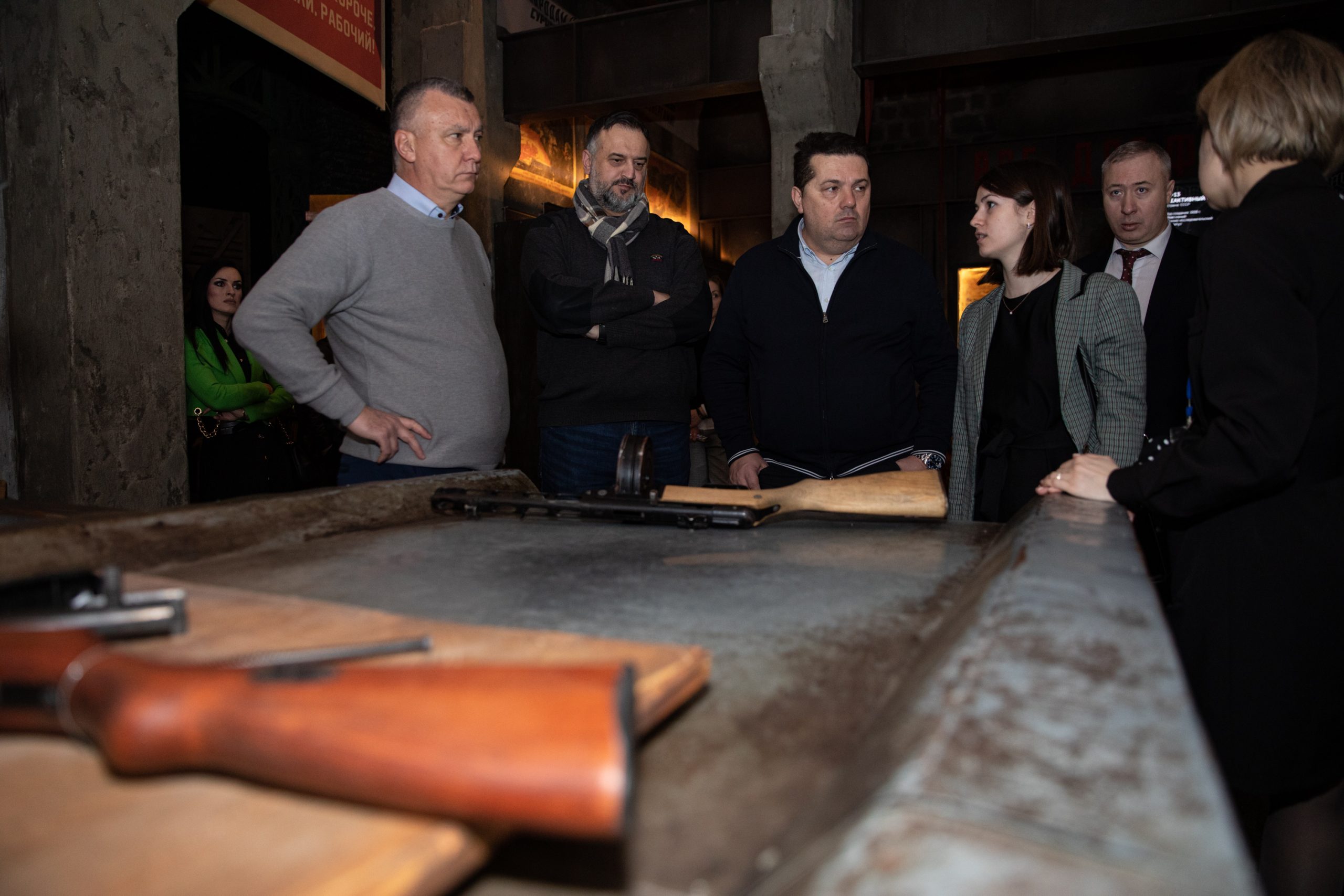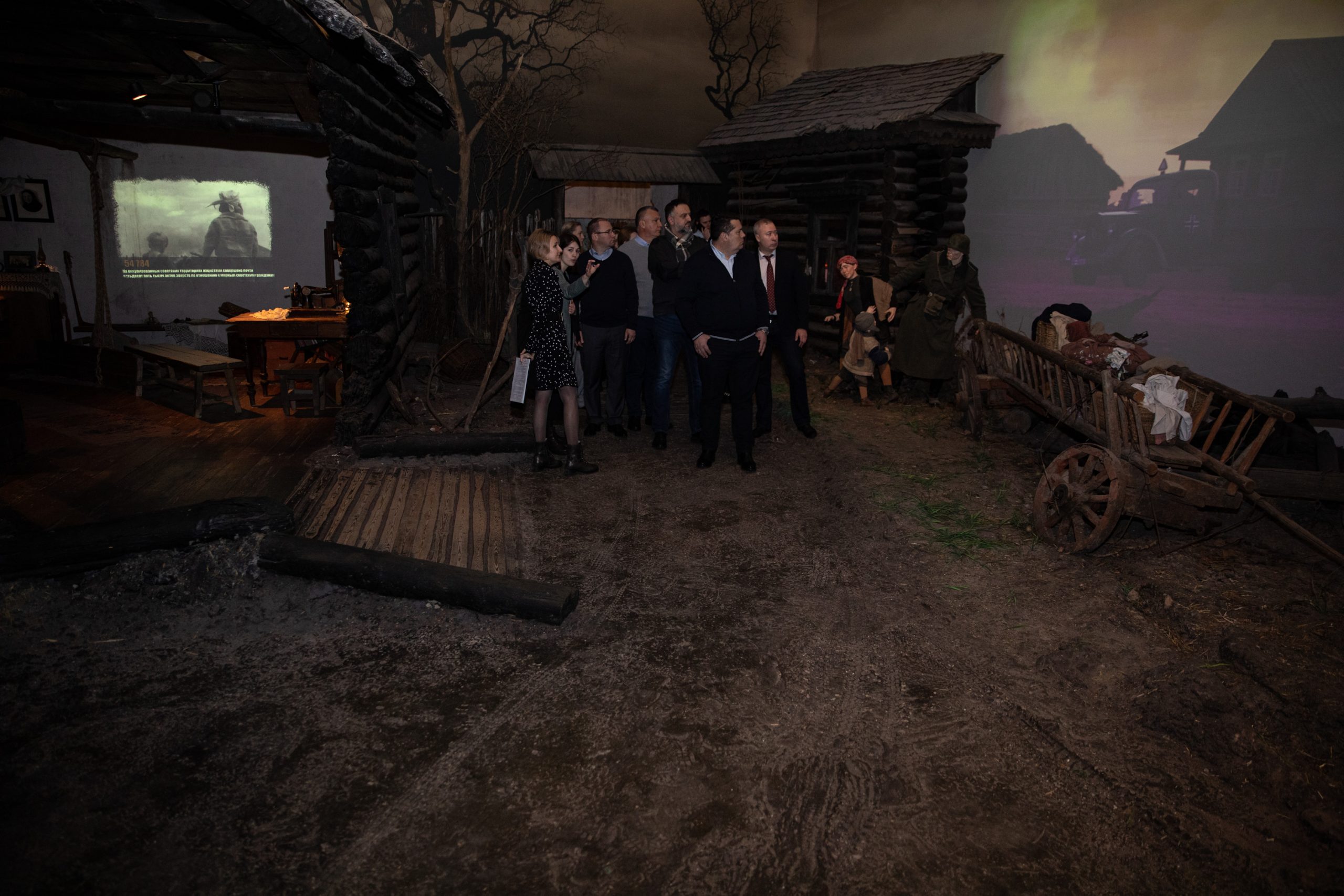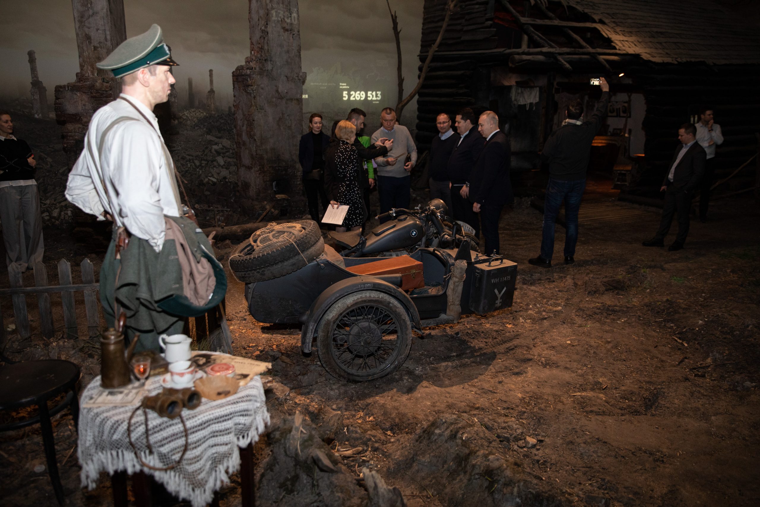 Участники делегации посетили экскурсию по уникальной иммерсивной экспозиции «Подвиг Народа» и осмотрели главное здание Музея Победы на Поклонной горе.