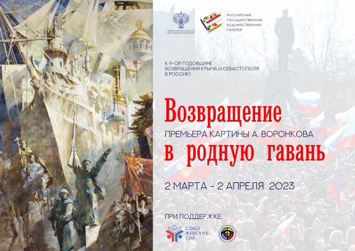 В Севастополе с 2 марта по 2 апреля 2023 года Российская государственная художественная галерея при поддержке Министерства культуры РФ представит выставочный проект «Возвращение в родную гавань», приуроченный к девятой годовщине возвращения Крыма в состав России. Об этом сообщает правительство региона.