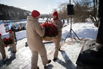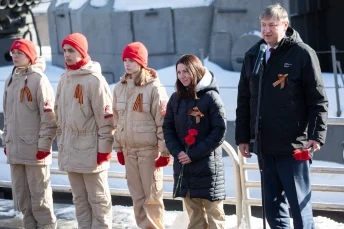 Участниками мероприятия стали ветераны Великой Отечественной, юнармейцы, делегация из Мурманска, «серебряные» волонтеры, члены семей участников СВО и представители общественности. В завершении они возложили цветы к памятнику погибшим морякам.