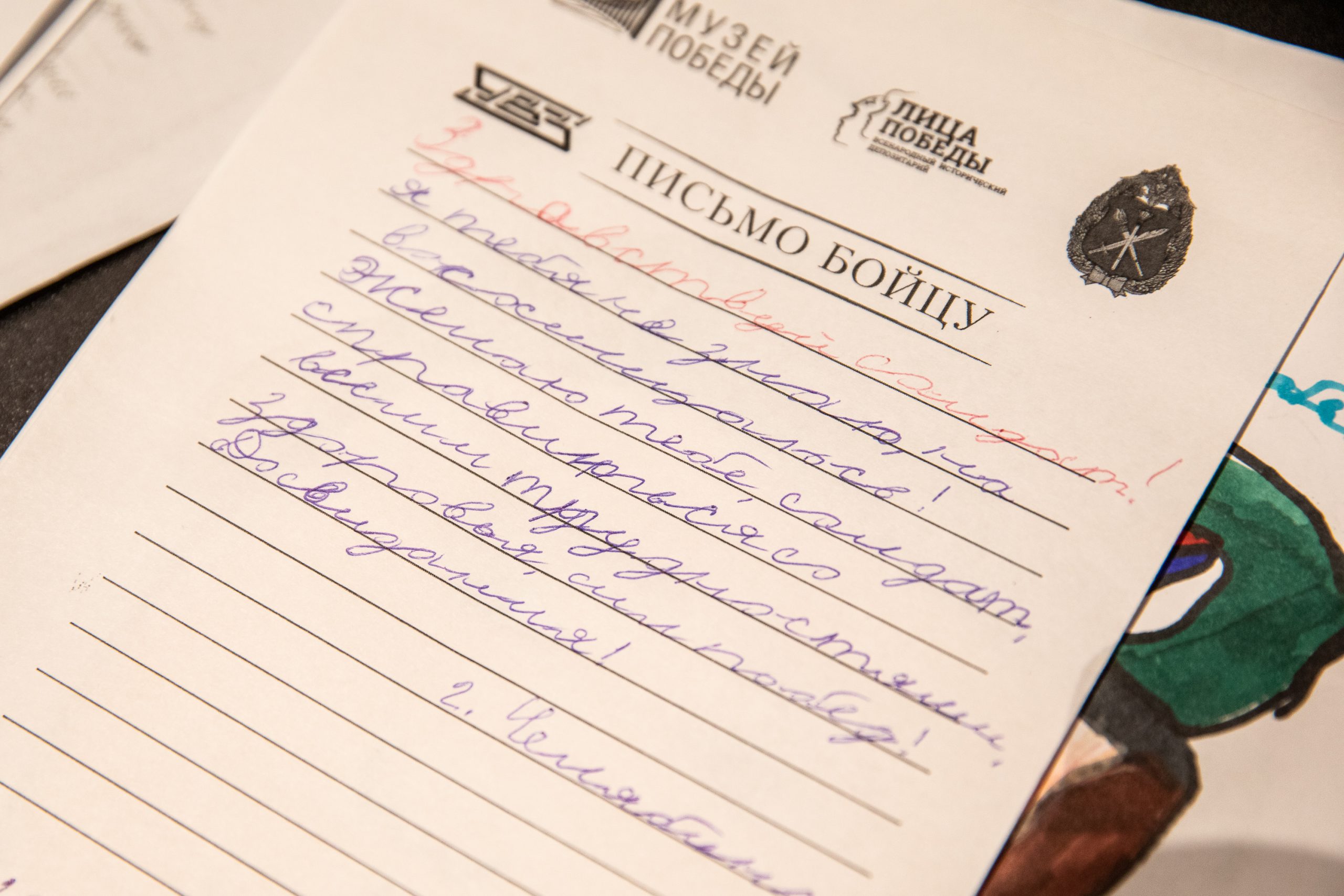 Акция «Письмо бойцу» стартовала в музее 9 декабря прошлого года в рамках открытия выставки «Zаветам Vерны». Мероприятие проводится совместно с Главным военно-политическим управлением ВС РФ.