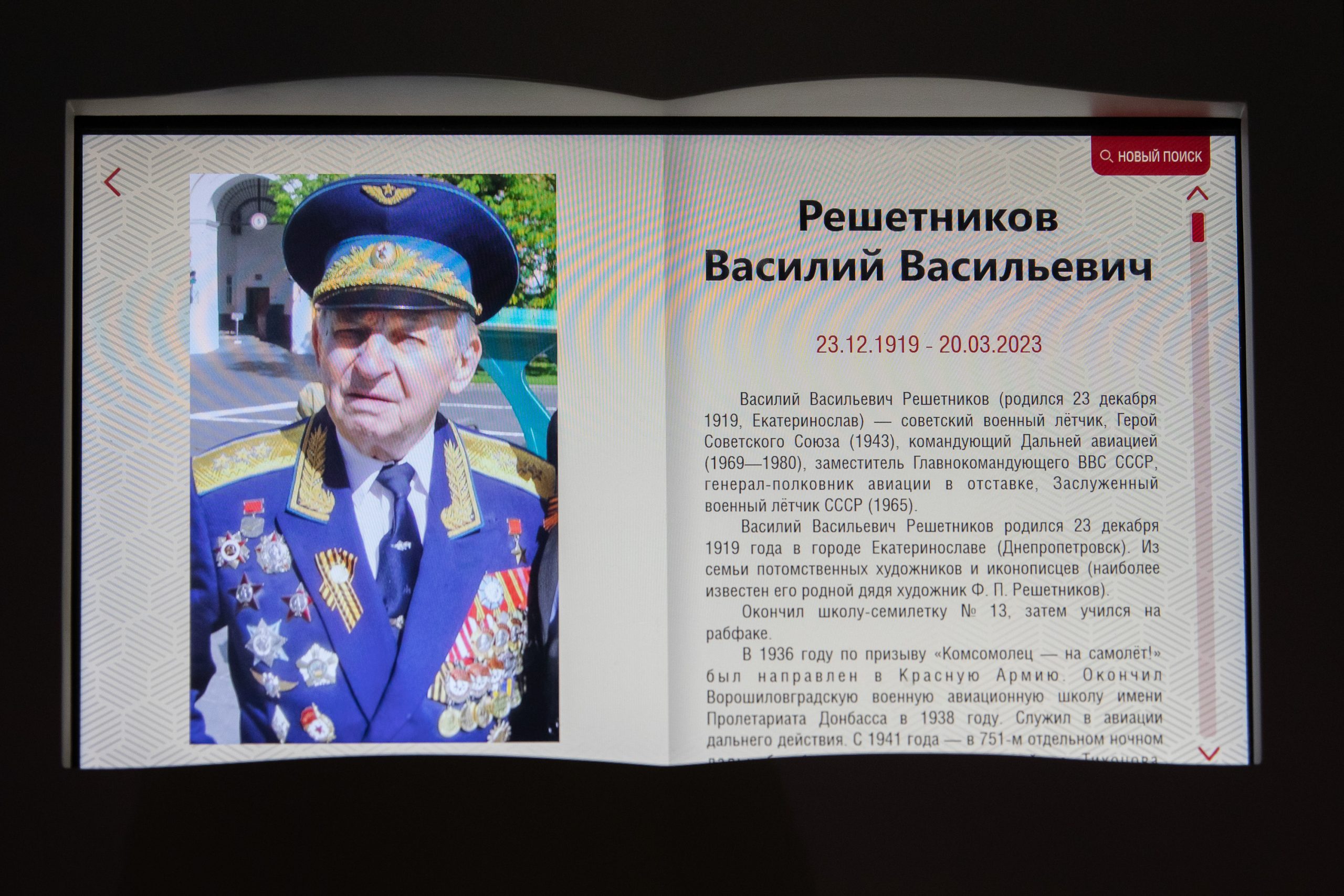Биография летчика также навечно сохранена в Музее Победы. Узнать о судьбе Героя Советского Союза и увидеть его портрет можно в мультимедийном зале «Лица Победы».