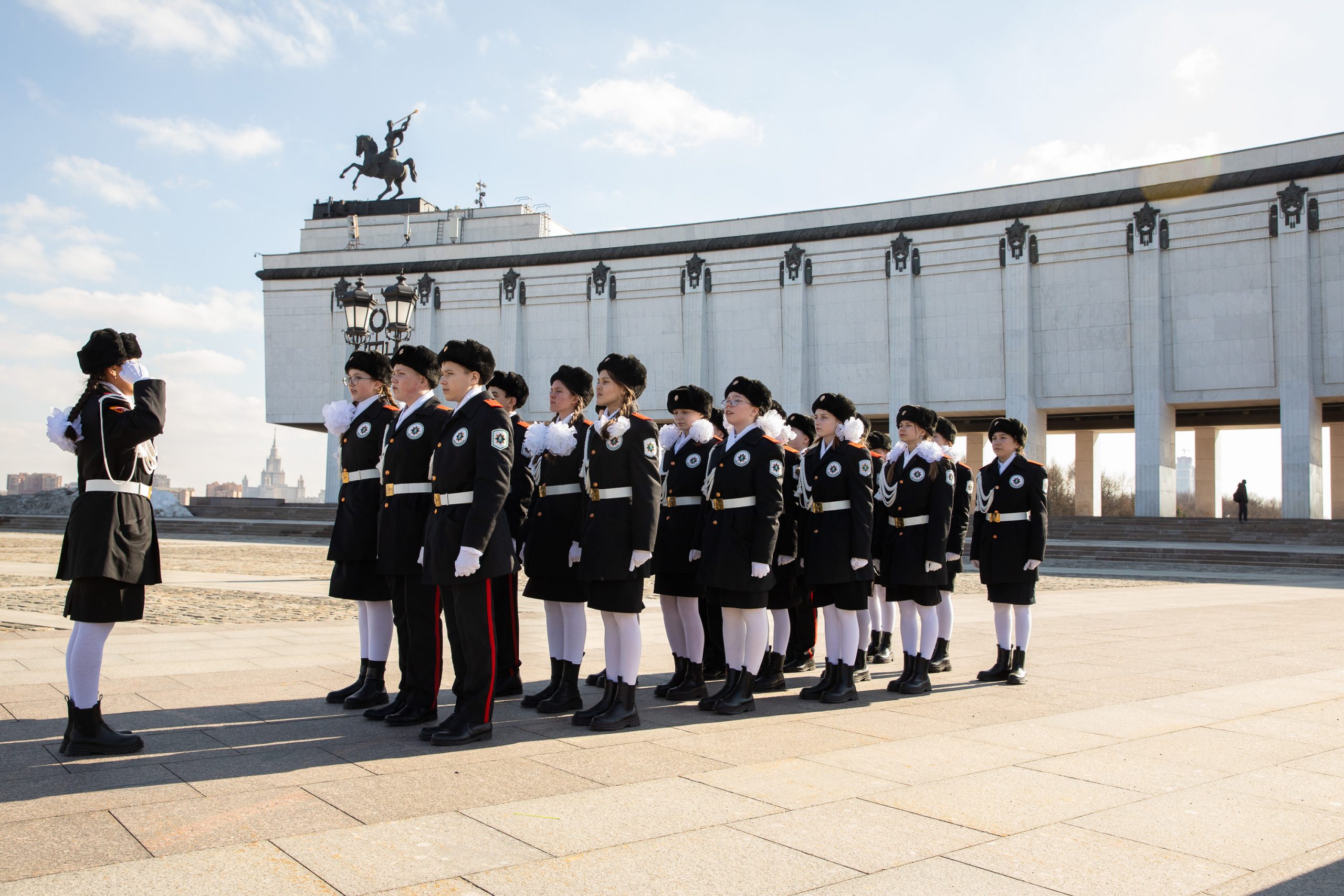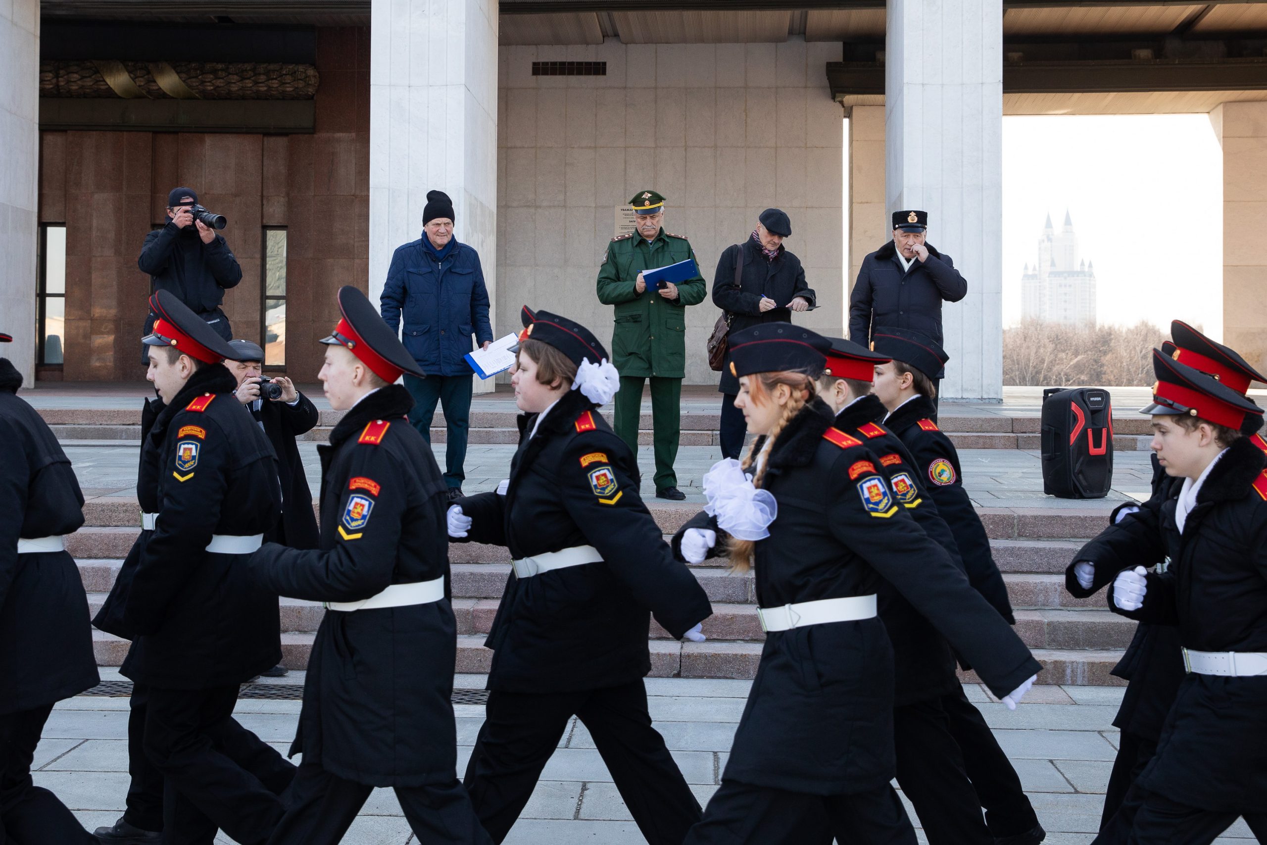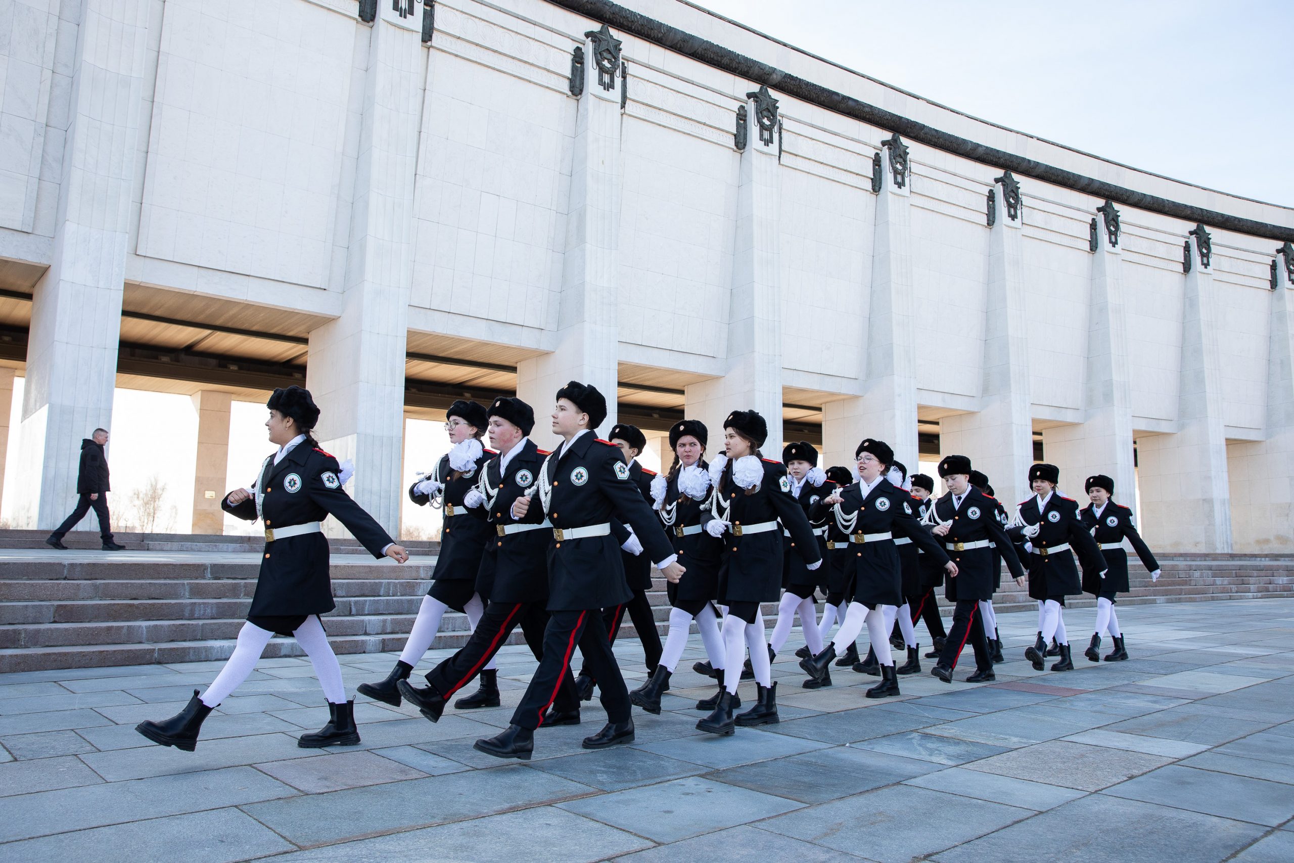 У стен Музея Победы стартовал городской конкурс «Смотр строя и песни. Марш Победителям!». Первыми участниками соревнований стали кадеты ГБОУ Школа № 2031, ГБОУ Школа № 771 и ГБОУ Школа № 1373.