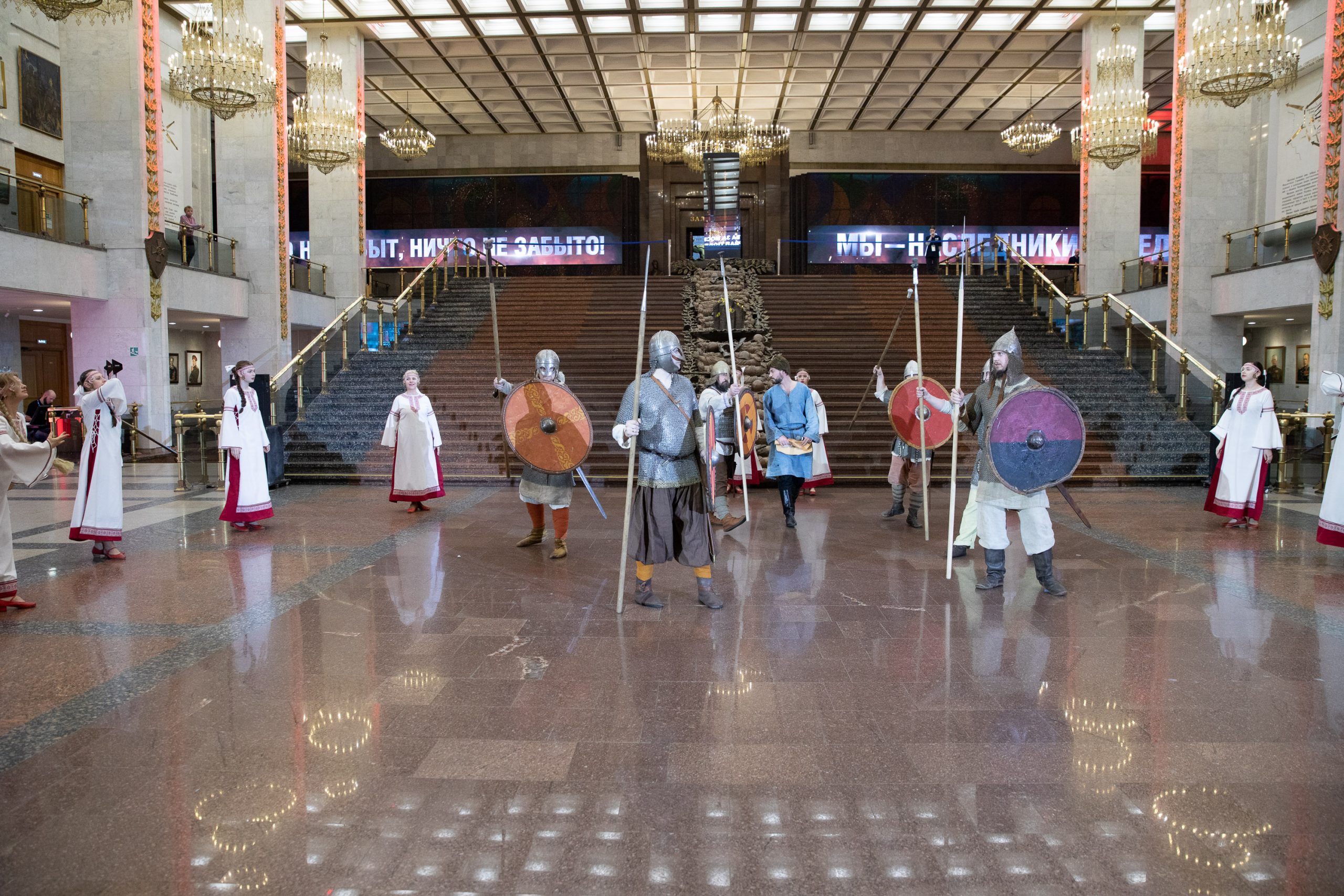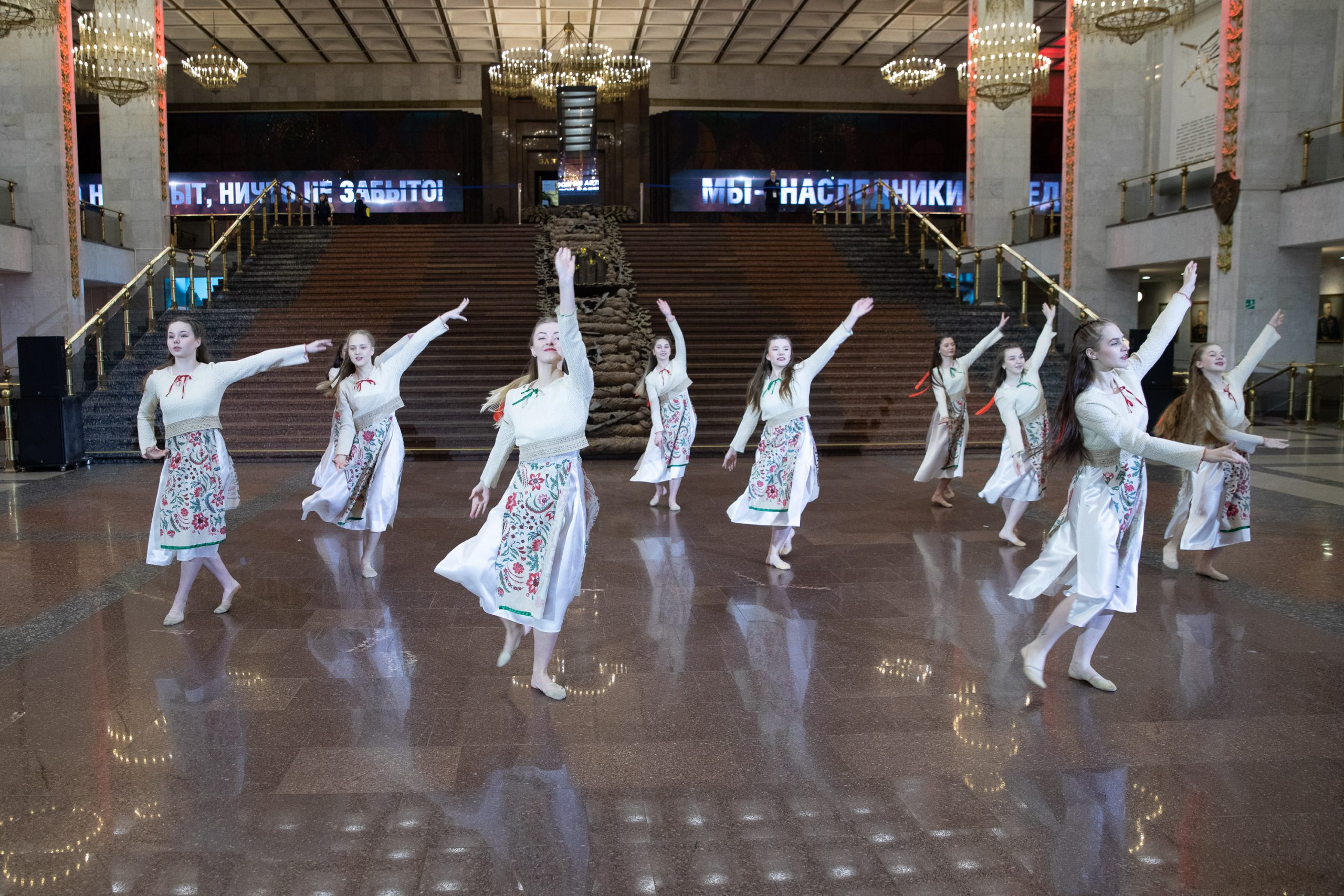 Гостям Музея Победы были представлены народные танцы, а также юные вокалисты исполнили песни о России и Белоруссии, среди них – «Беловежская пуща», «Белоруссия», «Вперед, Россия» и многие другие.