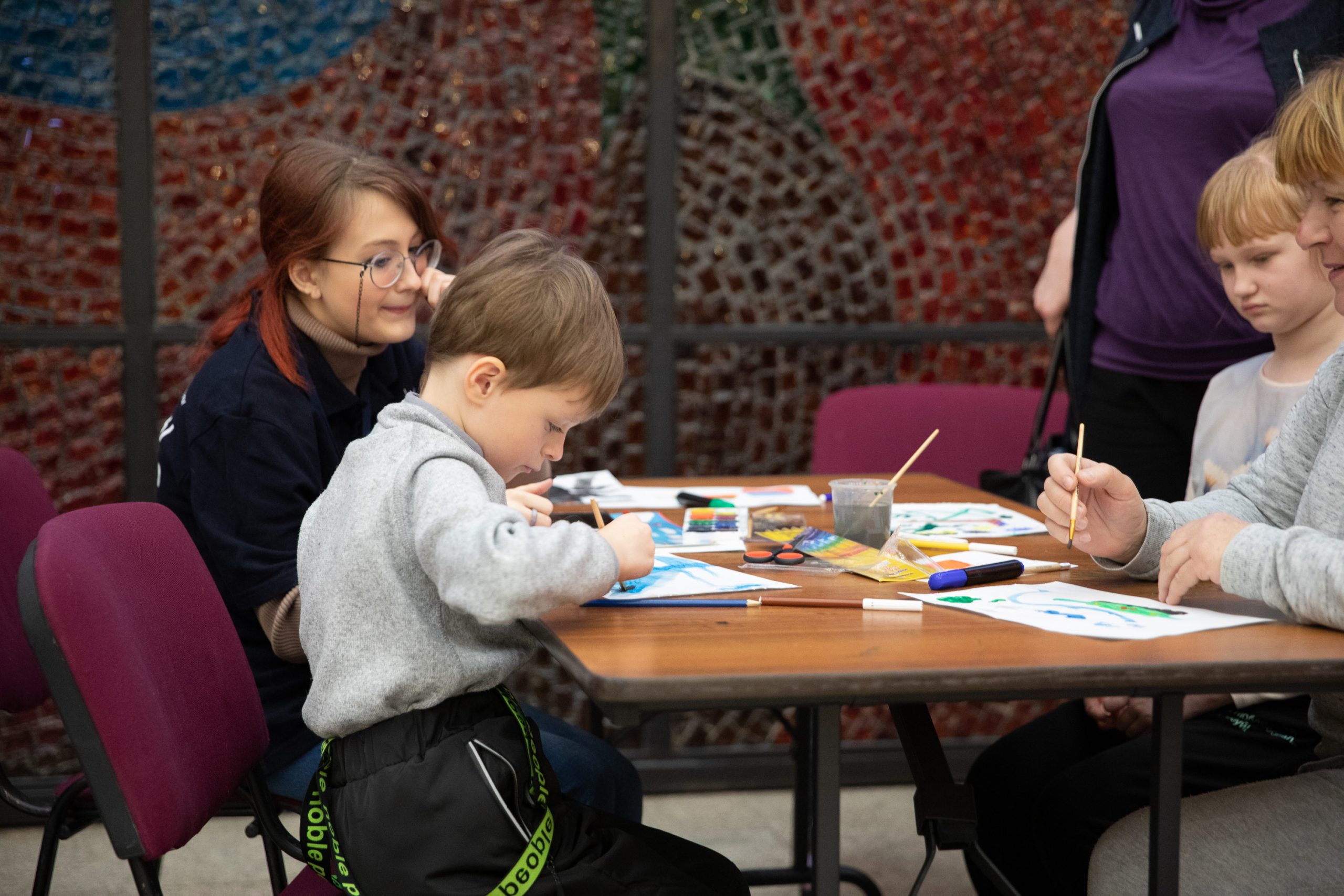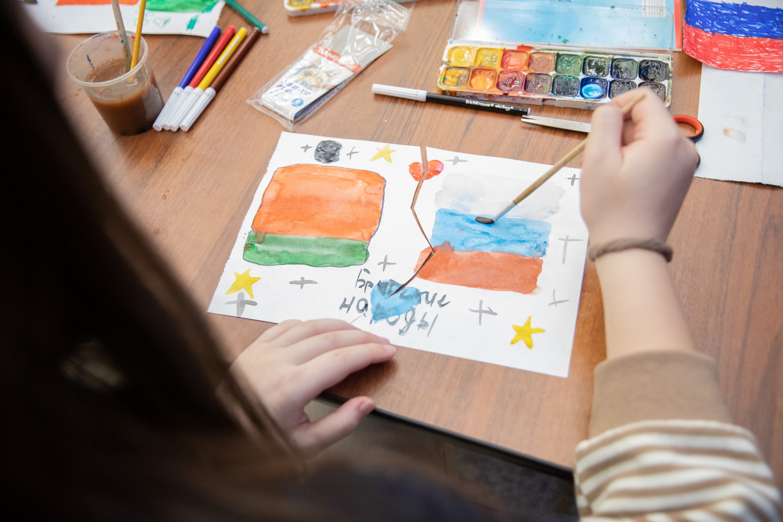 Десятки гостей музея приняли участие в мастер-классе «Братские народы», во время которого волонтеры познакомили ребят с национальными флагами двух государств, рассказали об их истории и помогли нарисовать главные символы стран.