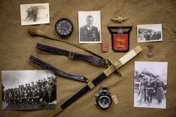 Также в фондах Музея Победы хранятся авиационные часы, компас, кортик, нашивки и значки Мориса Гидо.