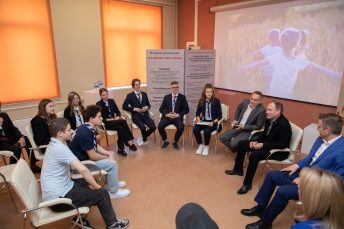 Во время встречи директор Музея Победы, заместитель секретаря Общественной палаты Александр Школьник ответил на вопросы ребят и рассказал о новых проектах, которые реализует Музей Победы, — выставках «Обыкновенный нацизм», «Обыкновенный НАТОцизм», «Zаветам Vерны», о проекте «Дети — детям», в рамках которой ребята сами проводят экскурсии и рассказывают гостям о Музее Победы.