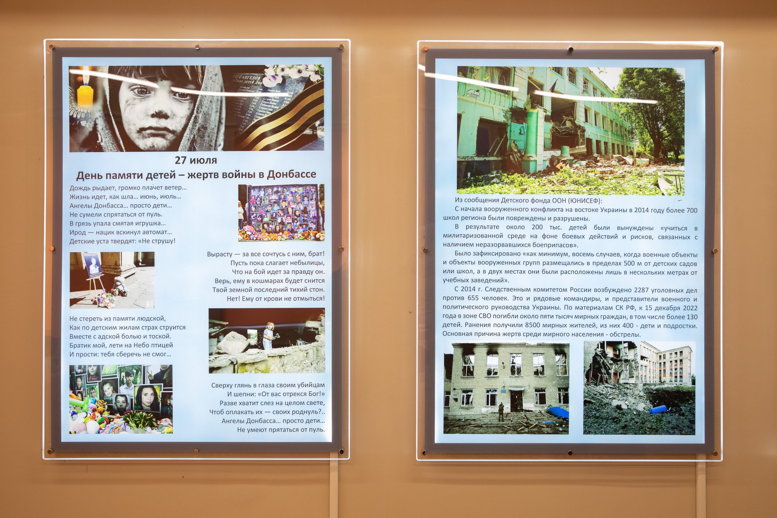 «Наш музей еще совсем молодой, мы только открываемся, но уже сегодня в нем представленный бесценные экспонаты: это личные вещи бойцов СВО, которые нам передали из ДНР, это осколки, которыми были ранены те, кто спасает мирных жителей от смерти и приближает победу, это снимки местных фотографов, показывающие правдивую историю о маленьких детях и их родных, живущих уже многие годы в нечеловеческих условиях», — рассказала историк, руководитель музейного комплекса ГБОУ школы № 1164 Елена Гераскина.