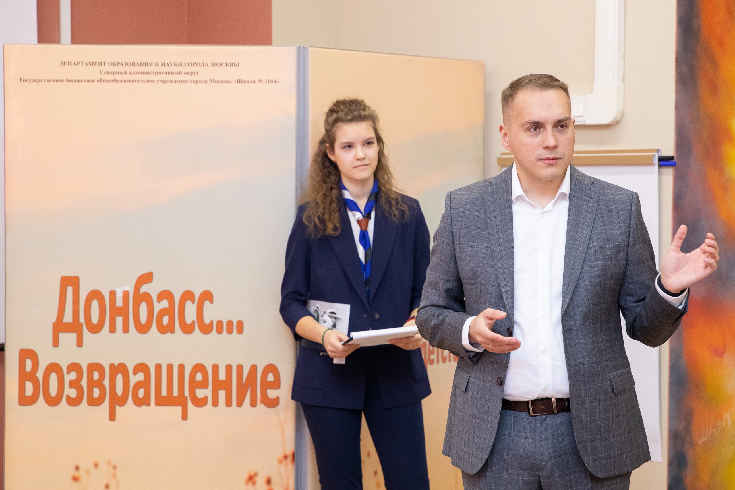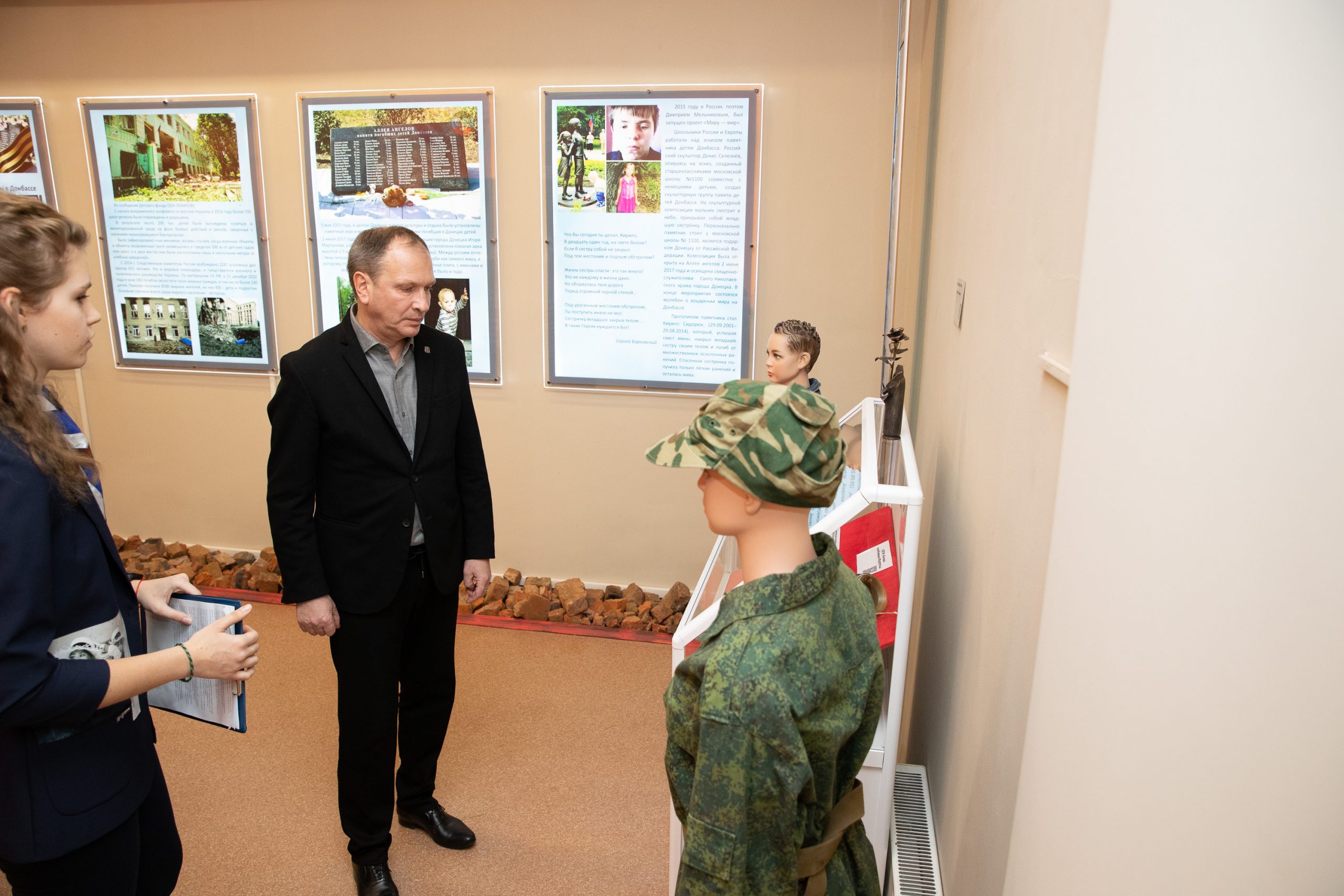 Директор Музея Победы, заместитель секретаря Общественной палаты Александр Школьник встретился с учениками московской школы № 1164 и осмотрел школьный музей, посвященный жителям Донецкой Народной Республике «Донбасс... Возвращение» и созданный при поддержке Музея Победы, Общественной палаты России и 122-й гимназии Донецка (ДНР).