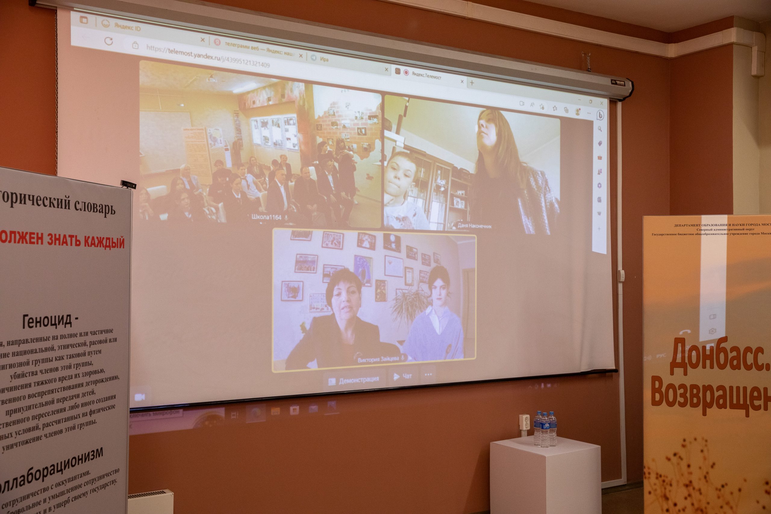 «Для нас, жителей Донецка, невероятно важно, что в Москве открылся такой школьный музей. Мы рады нашей дружбе. Она бесценна. Ваша поддержка, поддержка Музея Победы, придает нам сил. Несмотря на столь сложное время, мы верим, что все будет хорошо. Последнее время музей — это моя цель, и ваша поддержка для меня лично очень важна», — поделилась во время телемоста директор гимназии № 122 города Донецка Виктория Зайцева.