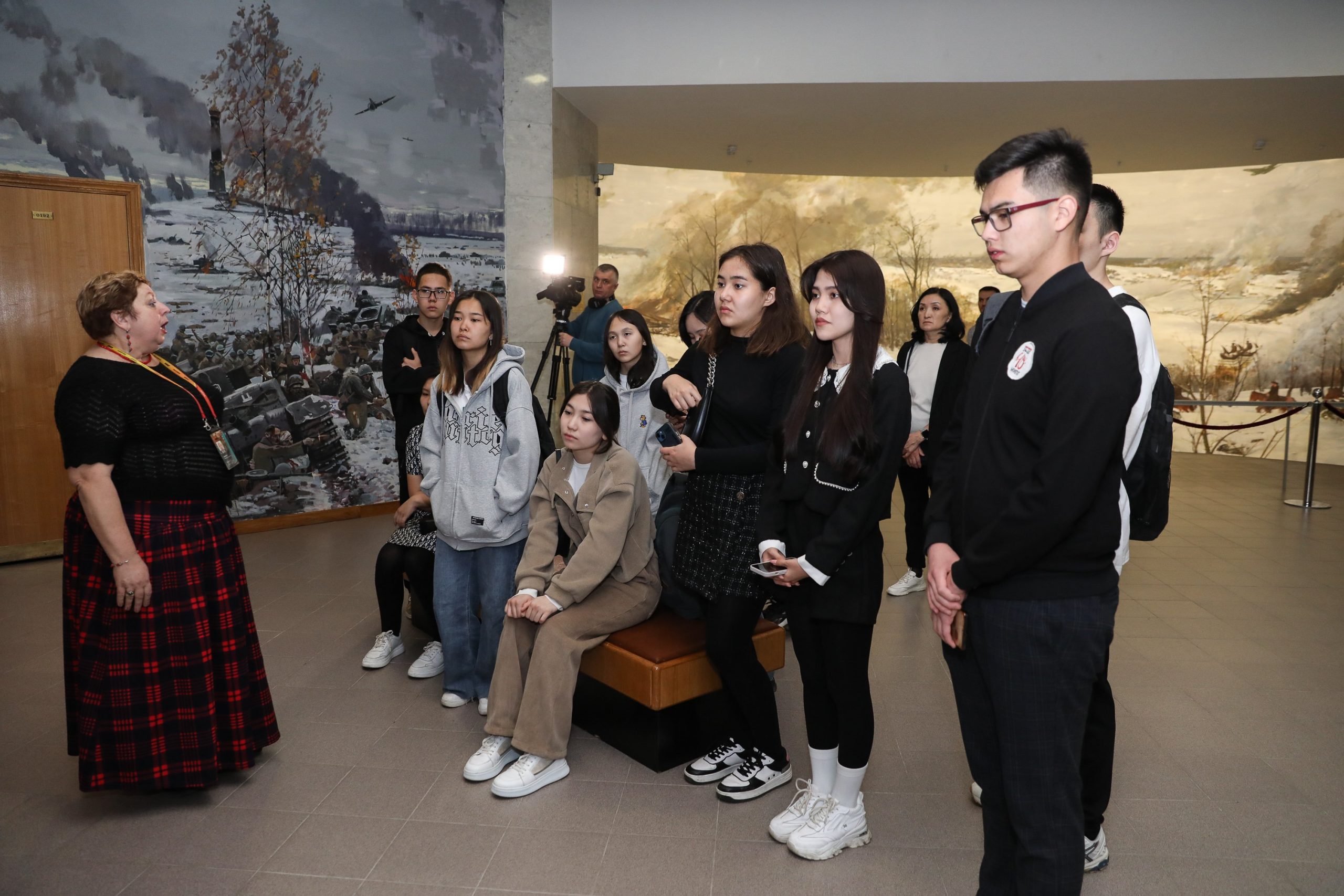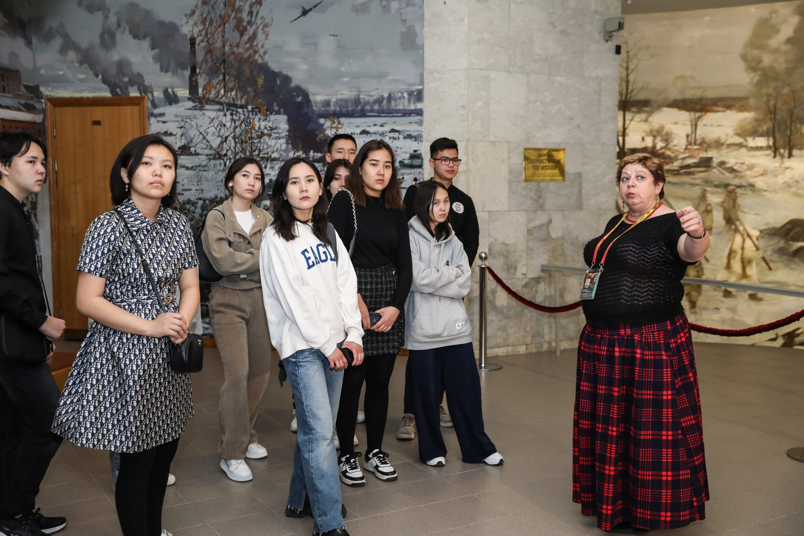 Музей Победы принял делегацию Ассамблеи народов Евразии. Школьники — активисты поисковых движений Киргизии и Казахстана побывали на экскурсии по интерактивной экспозиции «Подвиг Армии» и увидели инсталляцию в Зале Славы.