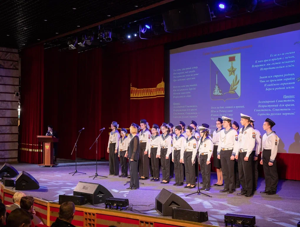 Мероприятие открыл хор «Морская душа» московской гимназии №1619 имени М.И. Цветаевой. Коллектив исполнил гимн города-героя Севастополя «Легендарный Севастополь».