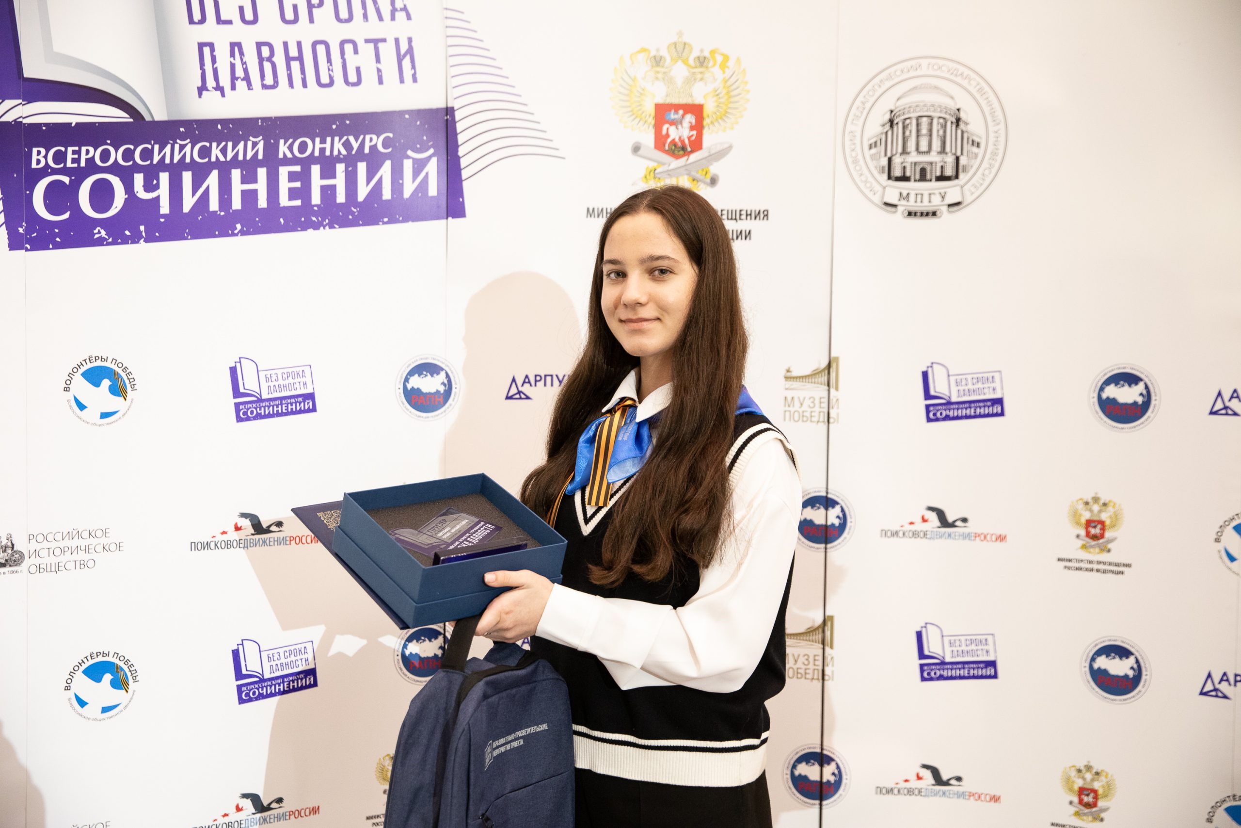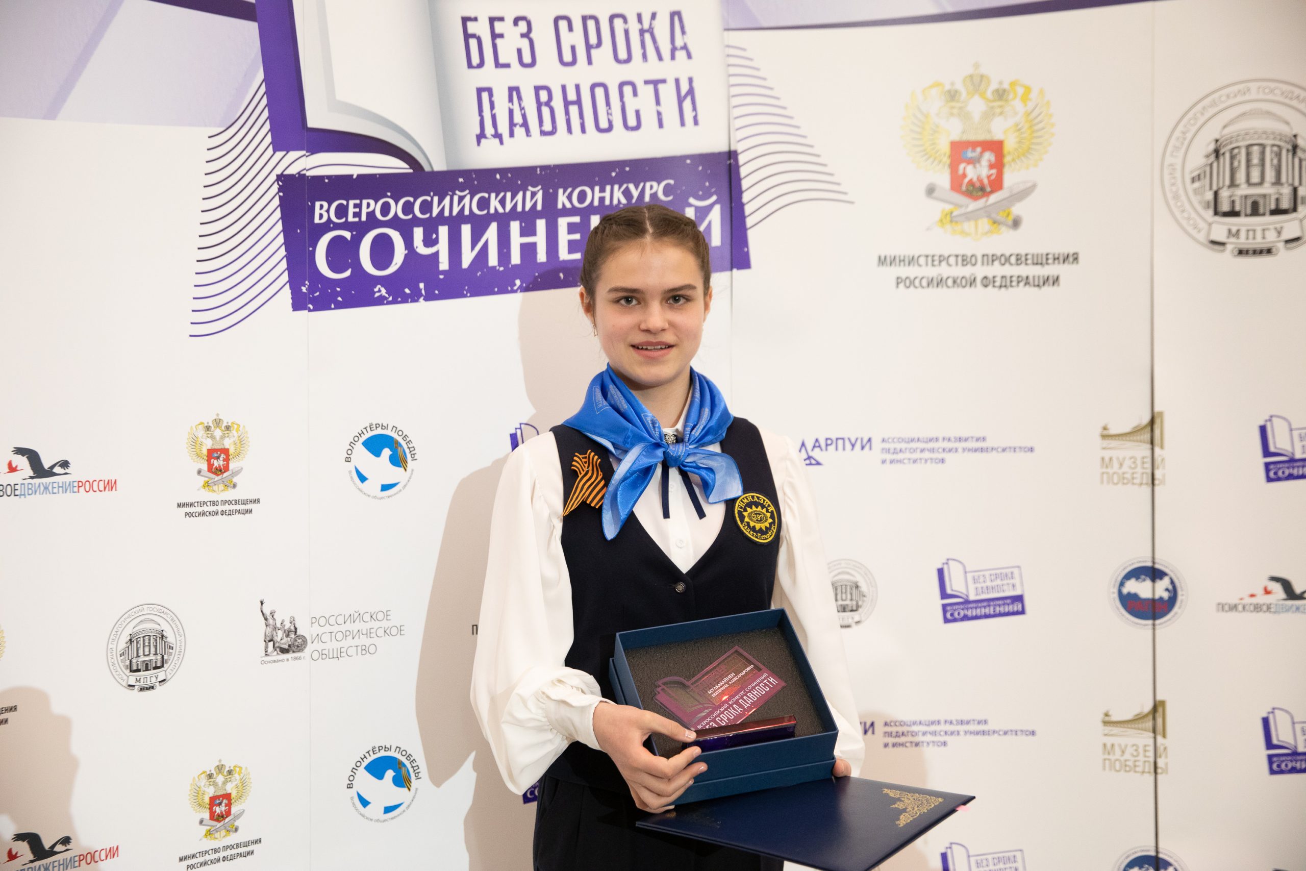 «Я уверена, что ваше участие в таких мероприятиях, как Всероссийский конкурс сочинений и фестиваль музеев «Без срока давности», это пример вашей активной гражданско-патриотической позиции не только для современников, ваших сверстников, но и для будущих поколений нашей страны», — добавила она.