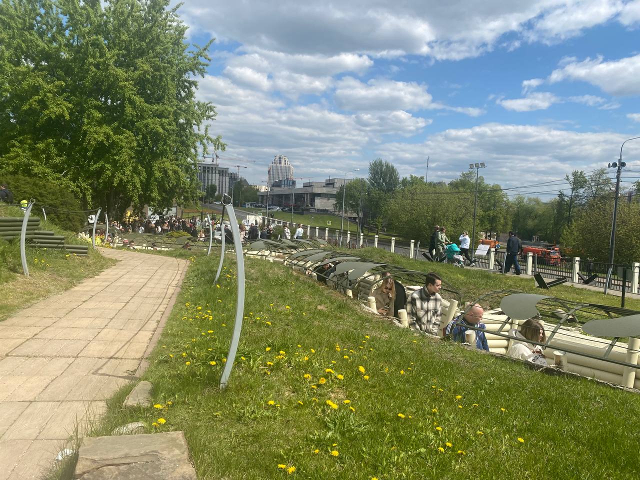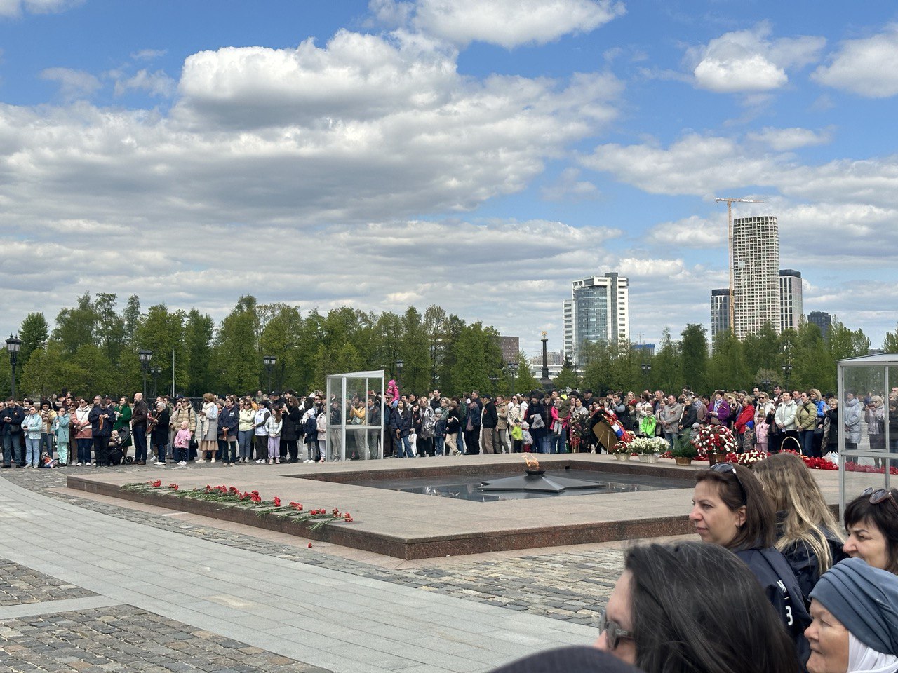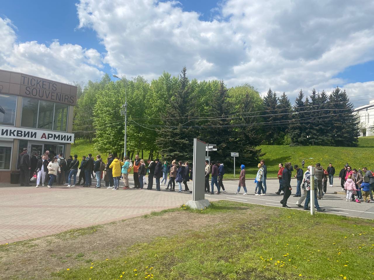 12:50 Музей Победы с раннего утра продолжает принимать гостей! У входа в главное здание выстроилась очередь.