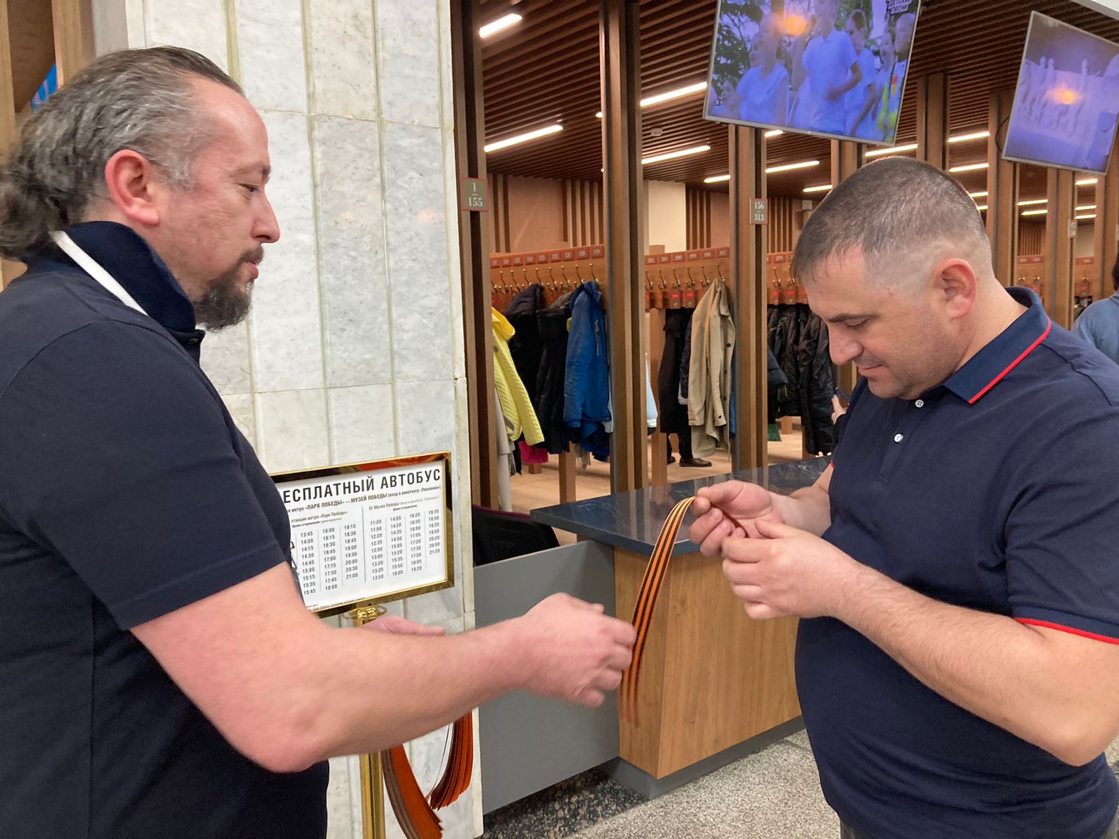 Всем пришедшим волонтеры Музея Победы в течение всего дня раздавали георгиевские ленточки. Всего волонтеры раздали порядка 60 тысяч лент. Среди гостей музея были ветераны Великой Отечественной, приехавшие на экскурсию по уникальной экспозиции «Подвиг Народа» после парада на Красной площади.