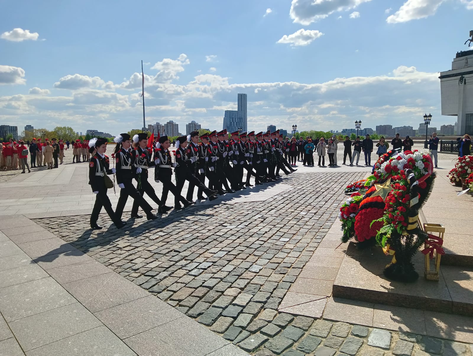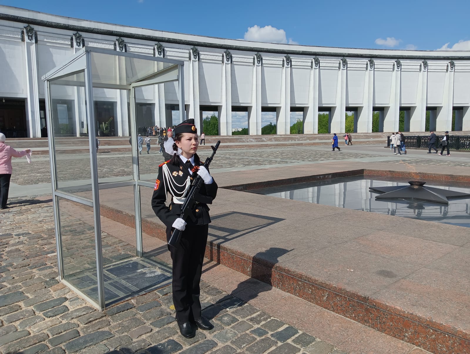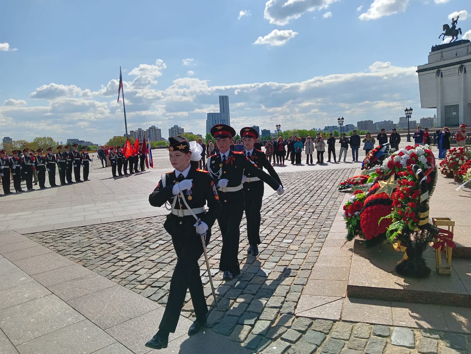 10:00 Началась вахта почетного караула московских кадетов у Вечного огня у стен Музея Победы.