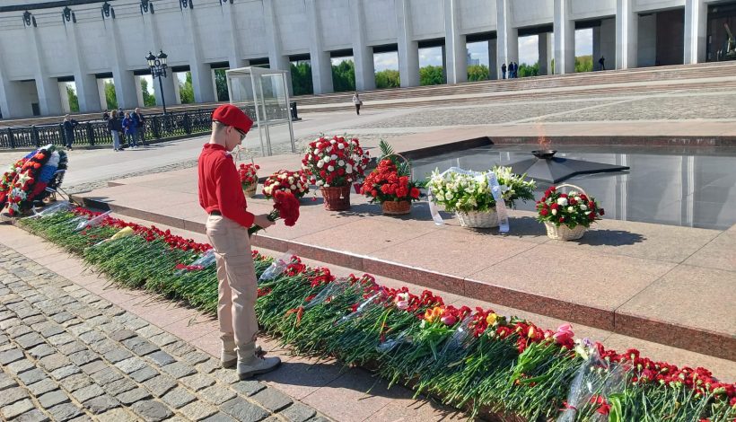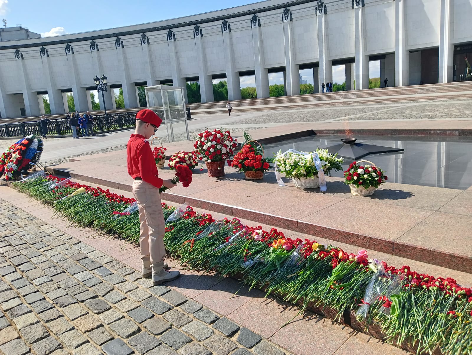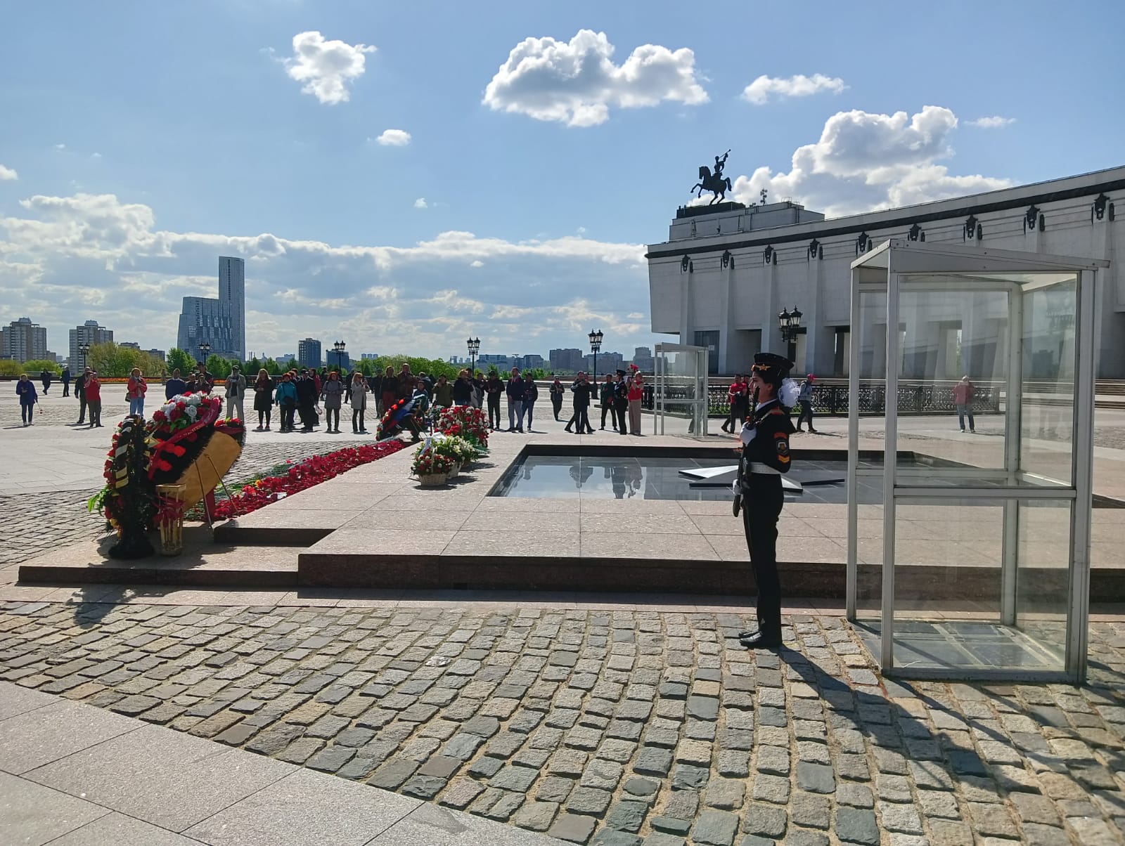 10:00 Началась вахта почетного караула московских кадетов у Вечного огня у стен Музея Победы.