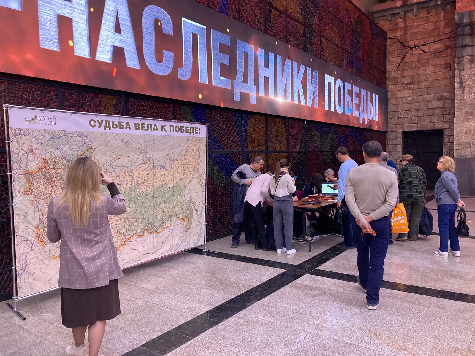 13:50 В Музее Победы стартовала акция «Судьба вела к Победе». В ее рамках волонтеры помогают посетителям восстановить боевой путь родственников, которые сражались с фашизмом.