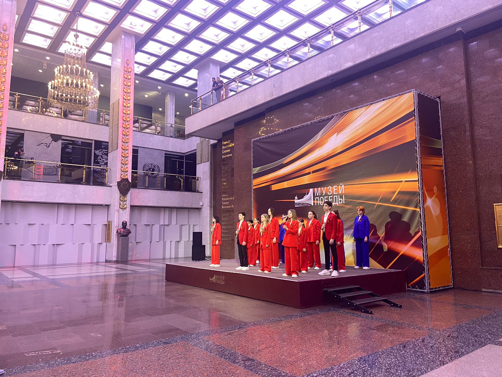 15:40 В Музее Победы проходит праздничный концерт, посвященный Дню Победы, в рамках Всероссийского патриотического конкурса детского и юношеского творчества «Журавли Победы». Его зрителями стали сотни гостей музея.