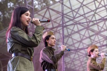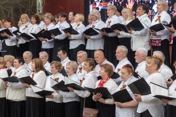 На главной сцене площадки состоялись концерты Большого сводного хора проекта «Московское долголетие» и музыкальных коллективов «Городок», «Поющий Город», ансамбля народного танца «Перепляс» в рамках Всероссийского патриотического конкурса детского и юношеского творчества «Журавли Победы».