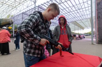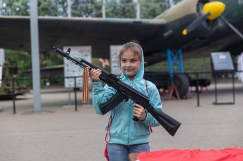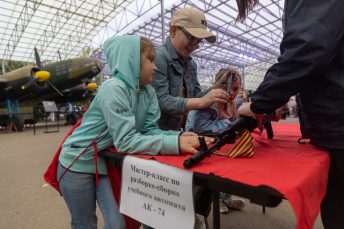 В «Авиационной» локации музея гости приняли участие в мастер-классах. Они создали танк в технике оригами, а также смогли потренироваться в разборке-сборке учебного автомата Калашникова.