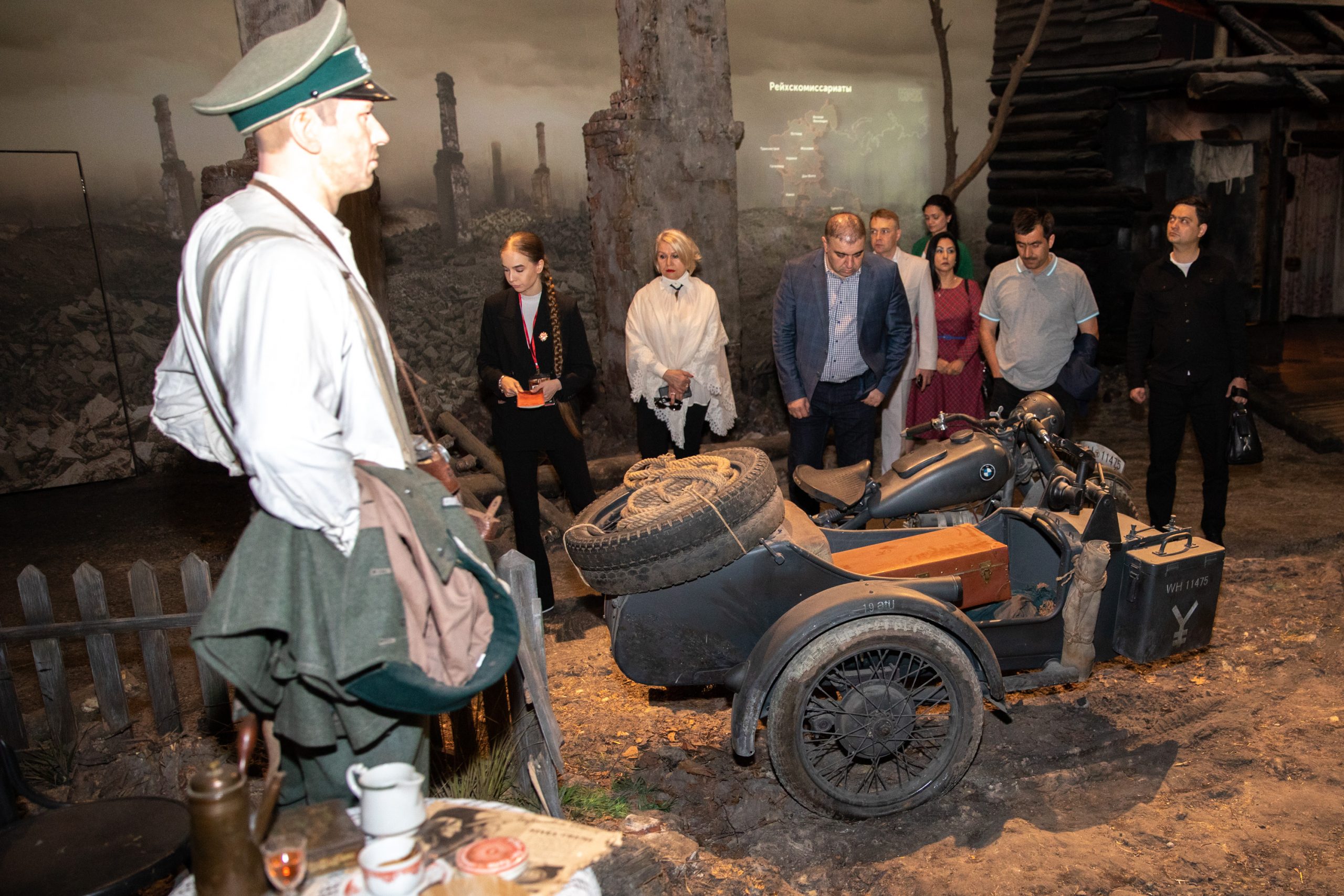 Представители делегации посетили иммерсивную экспозицию «Подвиг Народа», которая включает 17 тематических разделов и не имеет аналогов в отечественной музейной практике.