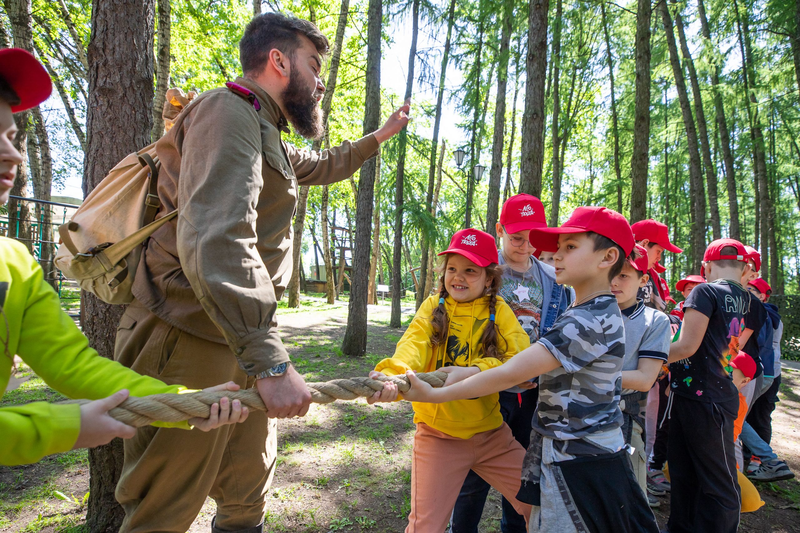 Старт новому летнему сезону был дан во время торжественной линейки. Она прошла у Вечного огня около главного здания Музея Победы, а затем ребята отправились в Парк Победы на увлекательную игру «Зарница».