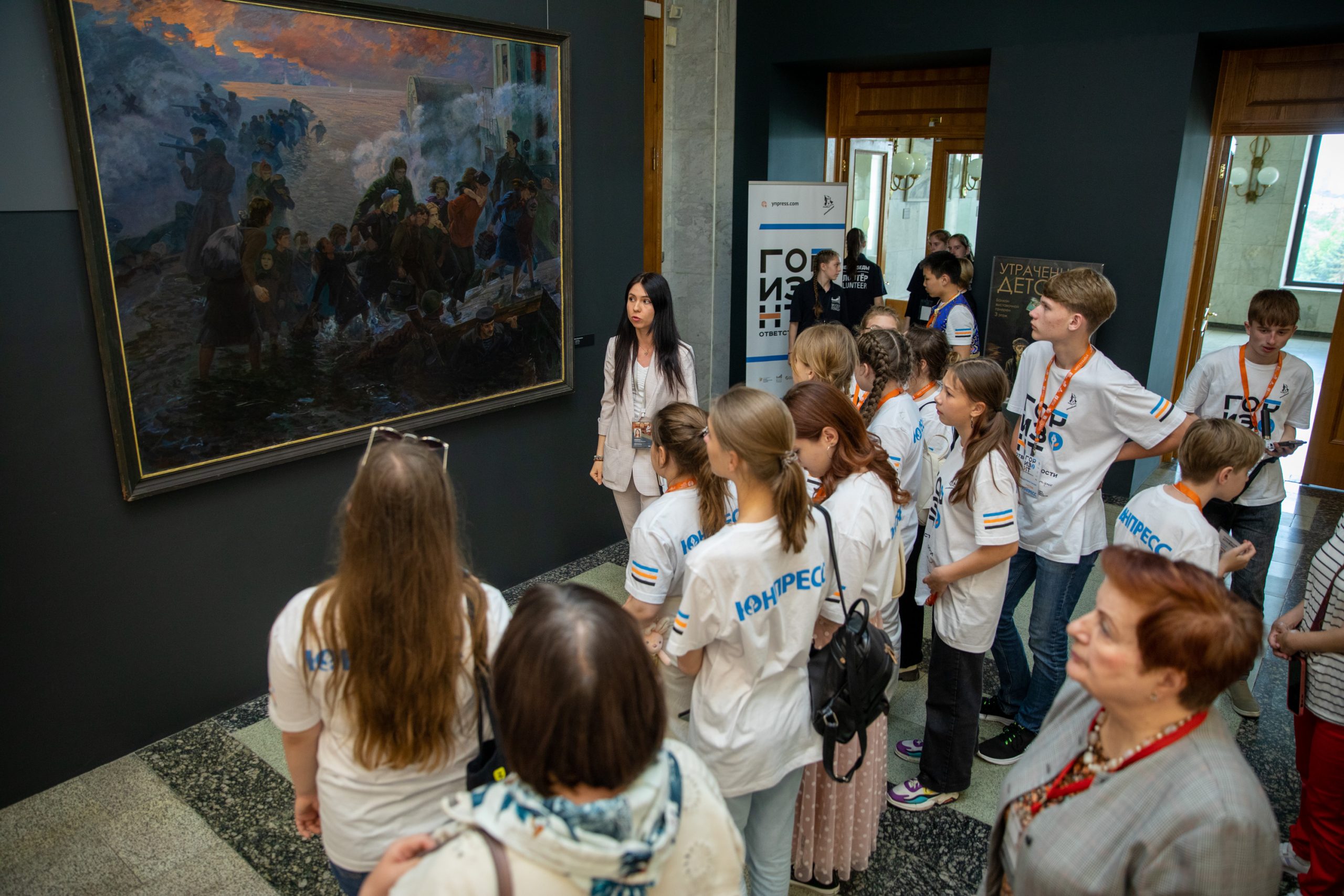«Ком подкатывает к горлу, глядя на эти картины. Война искалечила тысячи судеб маленьких детей, которые только начинали жить. И сотни были угнаны в концлагеря, родители погибали, и дети оказывались в детских домах. Моя бабушка была заведующей в таком детском доме и заботилась о таких ребятах», — рассказала собравшимся на торжественной церемонии член экспертного совета Министерства просвещения РФ, руководитель Детского центра Музея Победы Елена Слесаренко.