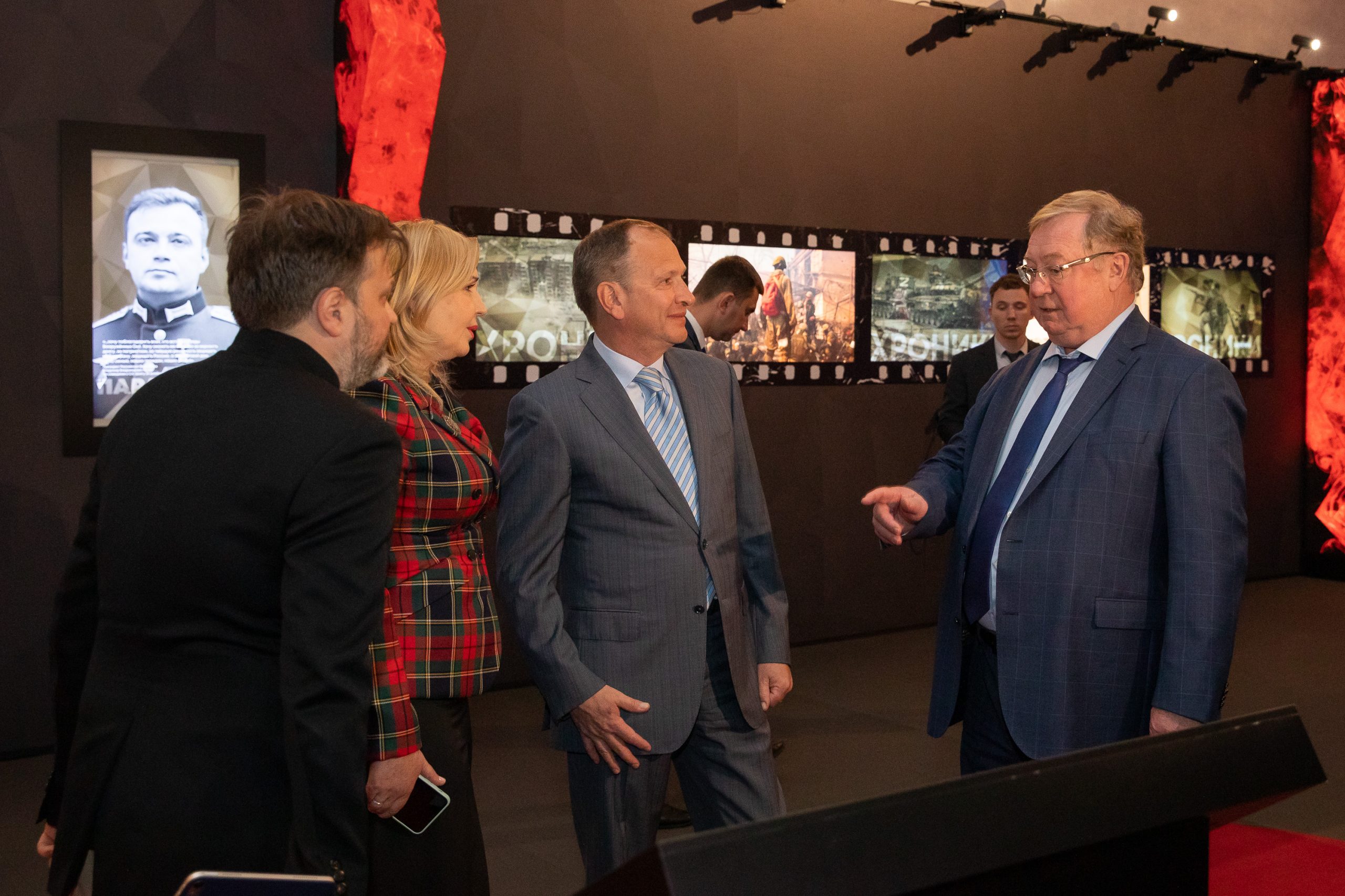 Российский политический и общественный деятель Сергей Степашин посетил выставочный проект Музея Победы «Zаветам Vерны», посвященный Героям специальной военной операции (СВО), и встретился с автором портретов.