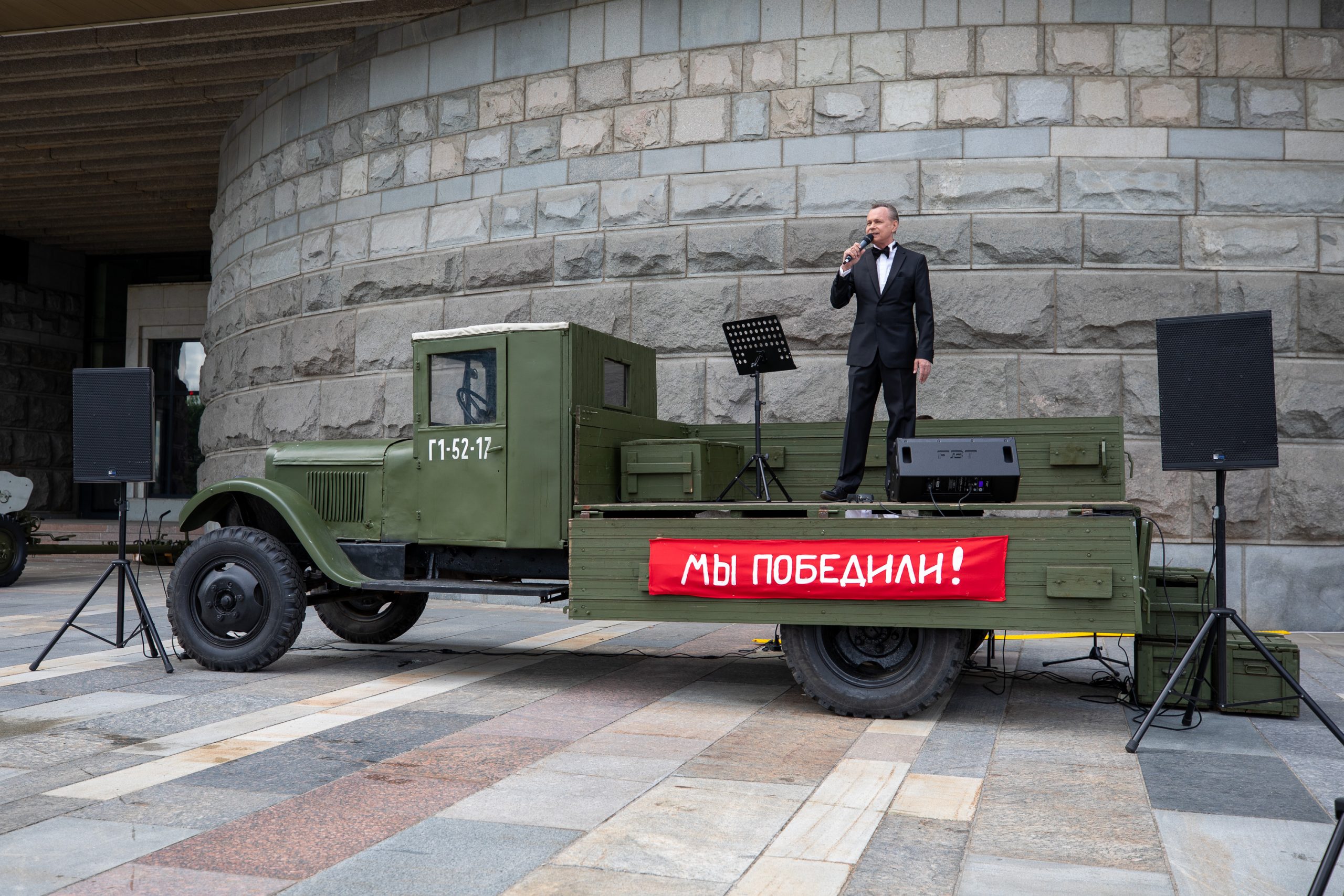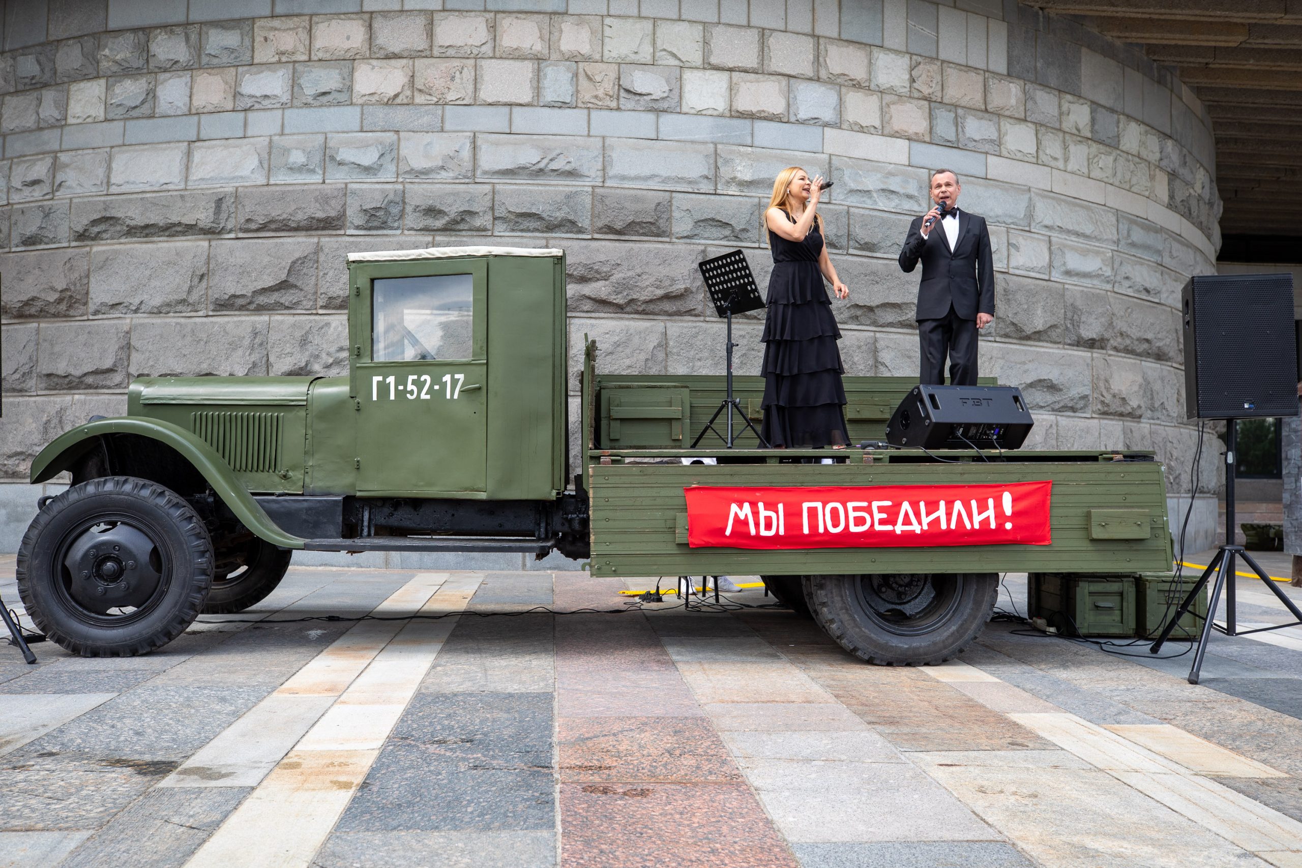 Легендарная полуторка ГАЗ-АА стала площадкой для «Фронтовой агитбригады». Она будет работать каждые выходные в рамках проекта «Парк Победы. Главный патриотический».