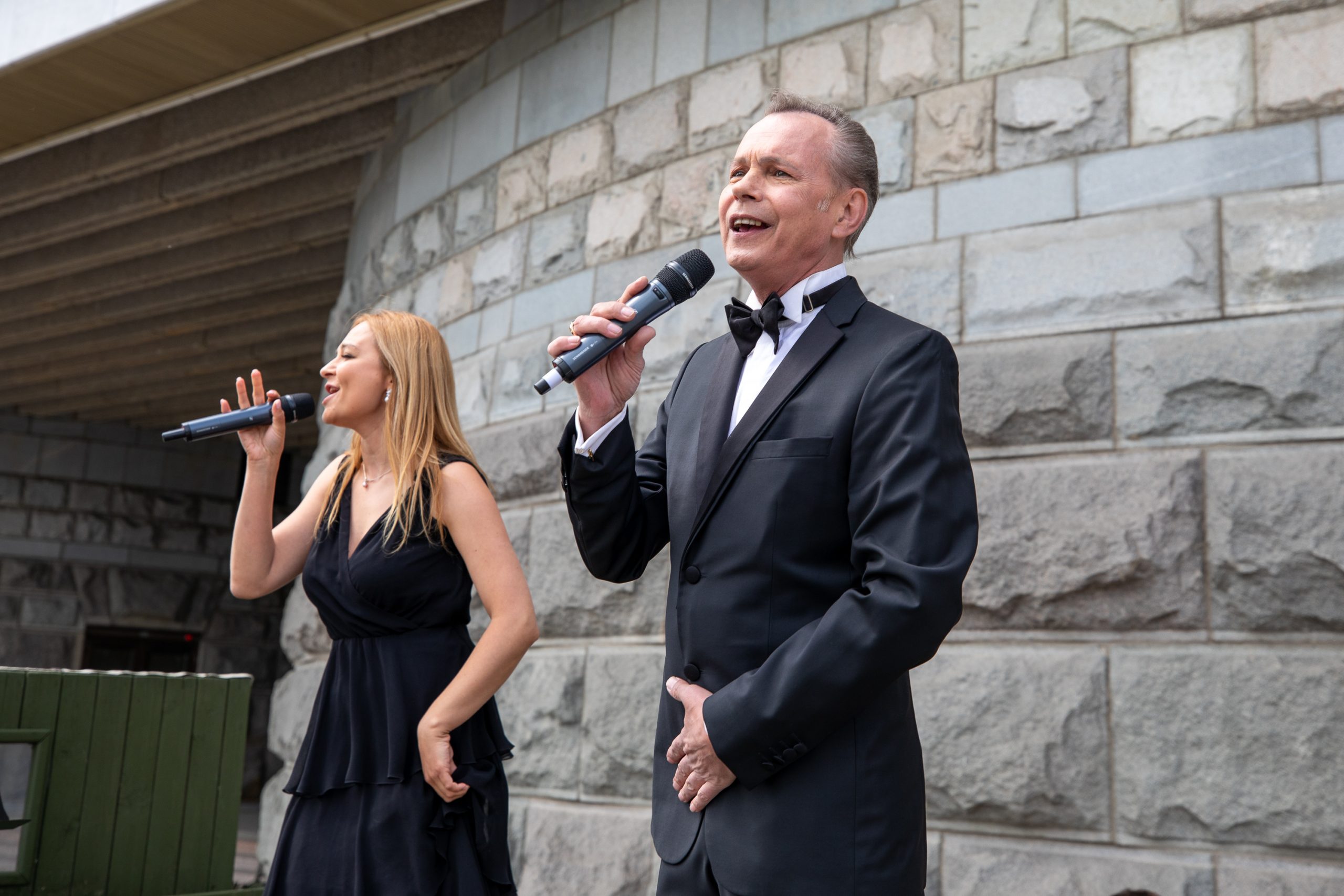 Для первых посетителей Парка Победы с музыкальной программой выступил известный певец Владимир Левкин. Он исполнил уже полюбившиеся многим композиции своего репертуара, а также патриотические песни. Во второй части программы он выступил со своей супругой Марусей Левкиной.