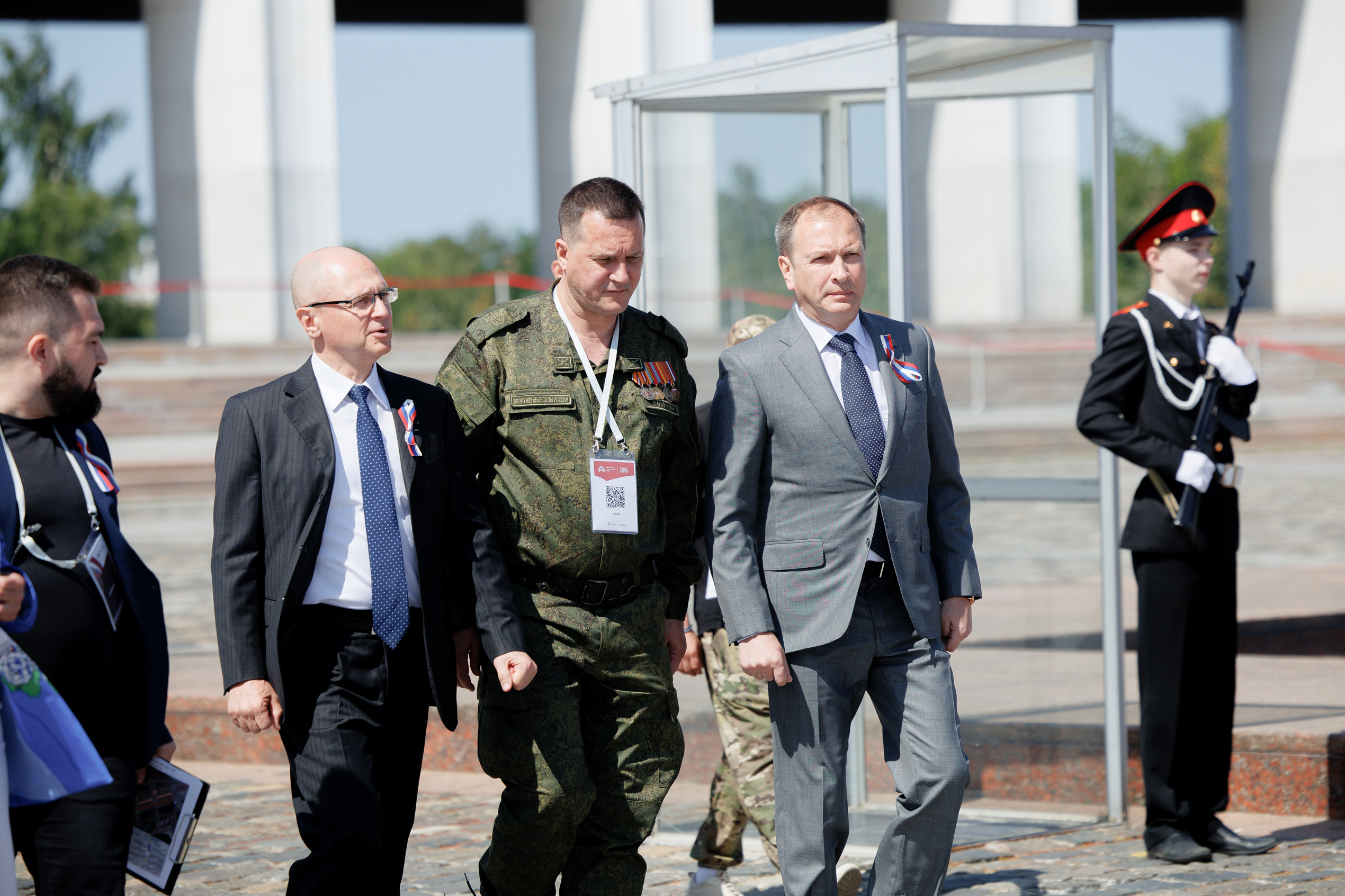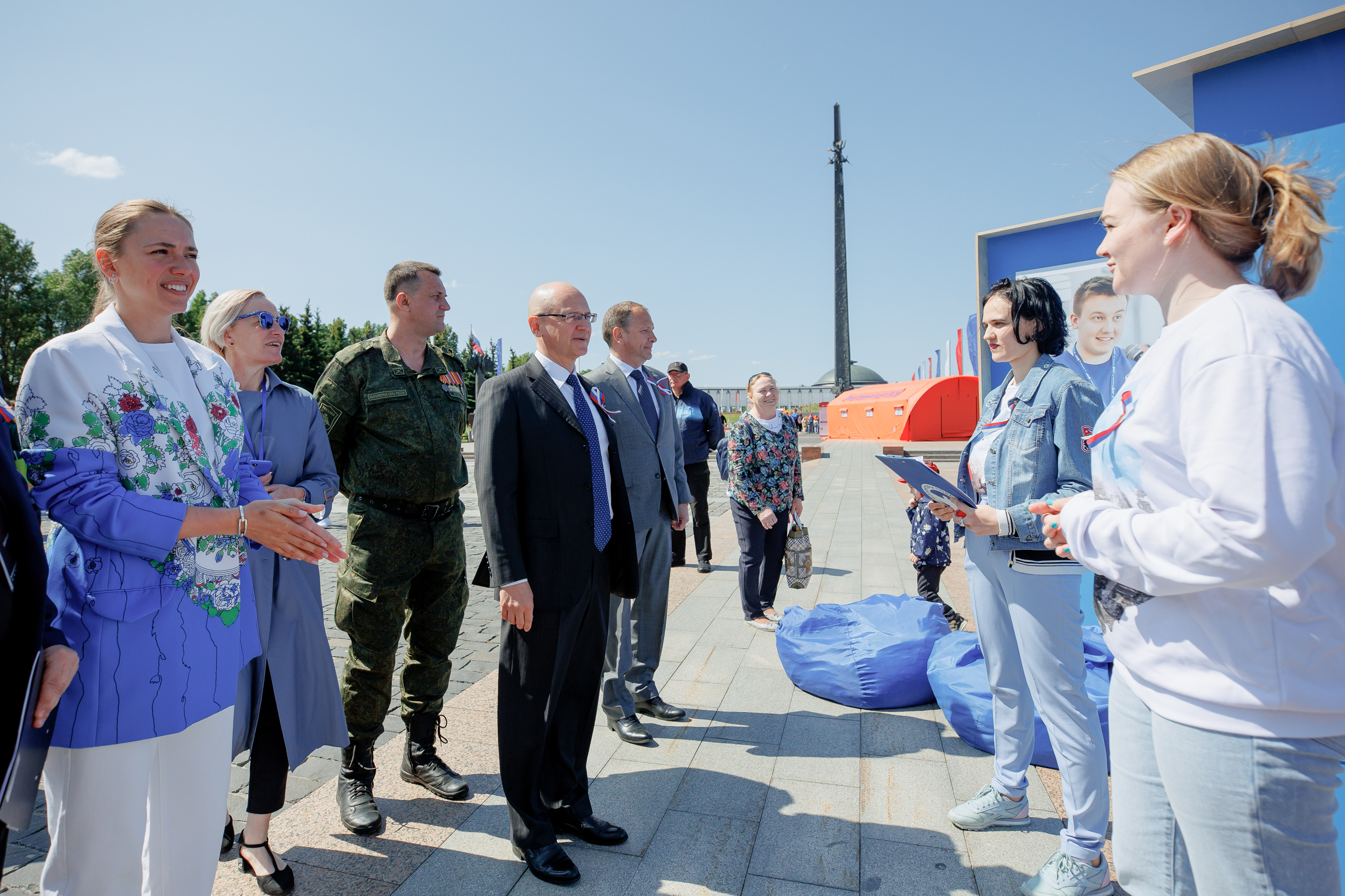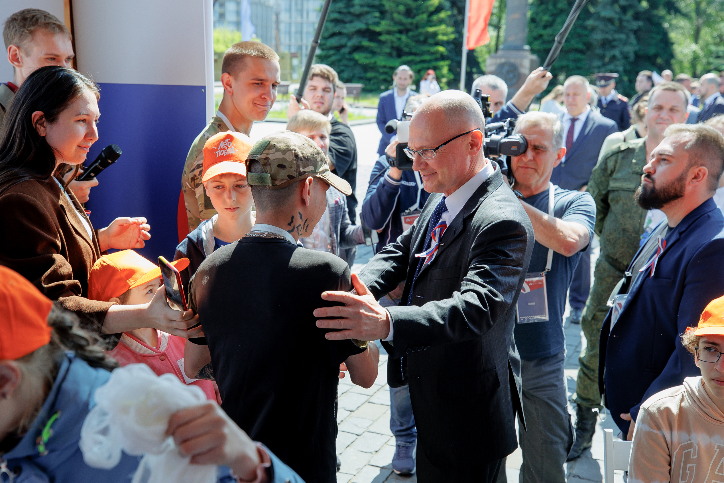 Сергей Кириенко и Александр Школьник поздравили участников площадок патриотического форума и ребят, которые пришли на открытие, с Днем России и пожелали успехов во всем.