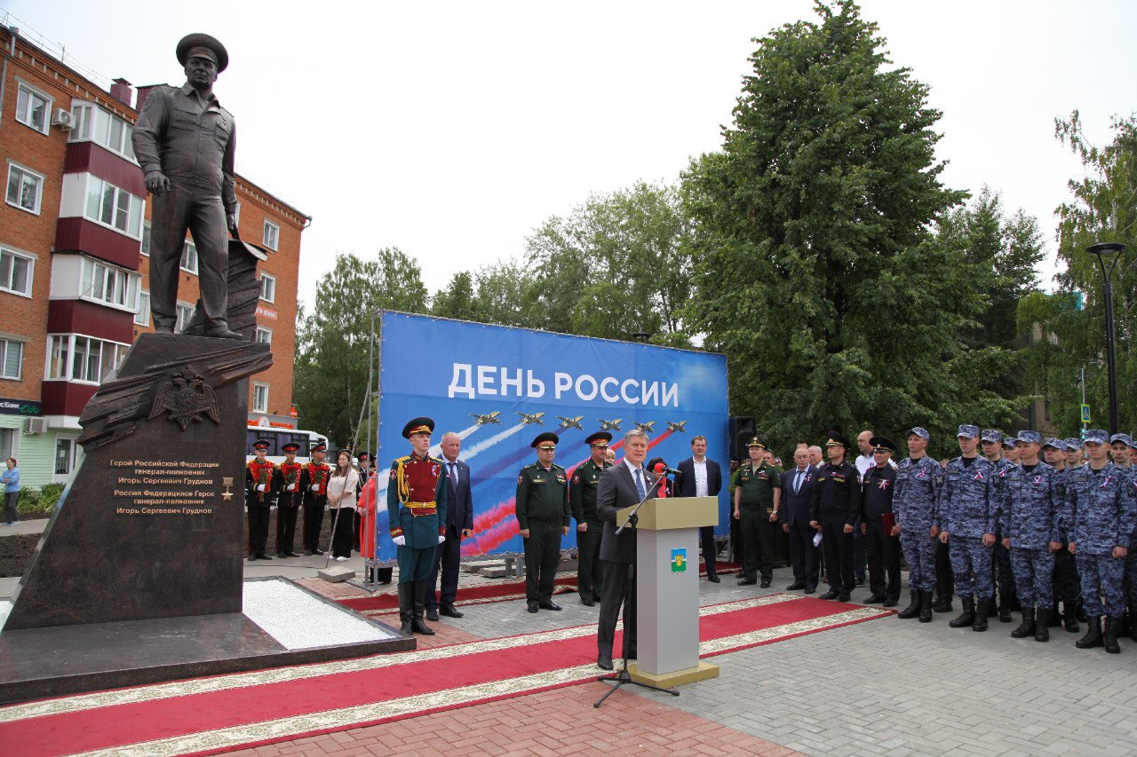 В Чистополе (Республика Татарстан) в День России состоялась торжественная церемония открытия памятника уроженцу города, Герою Российской Федерации генерал-полковнику Игорю Груднову.