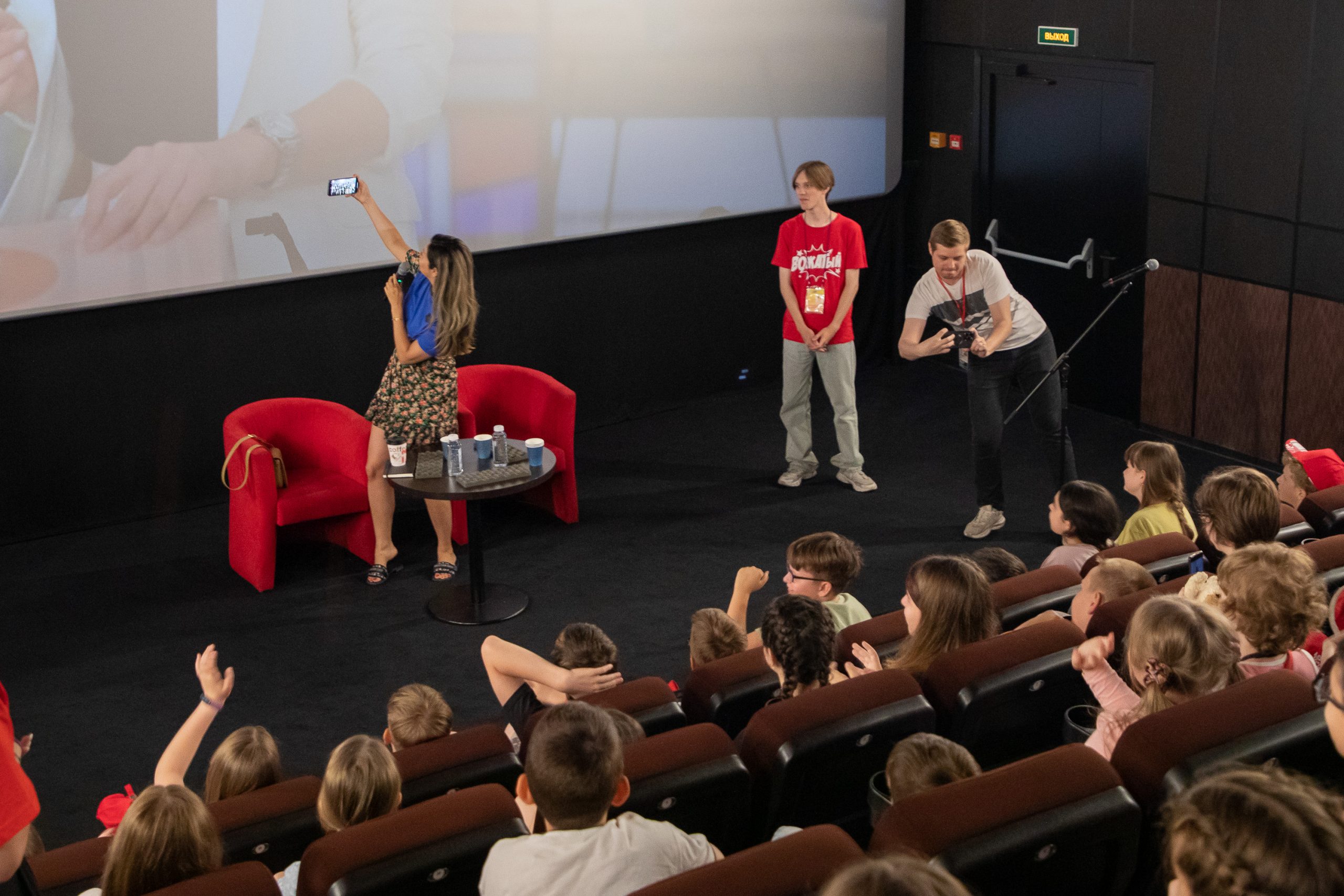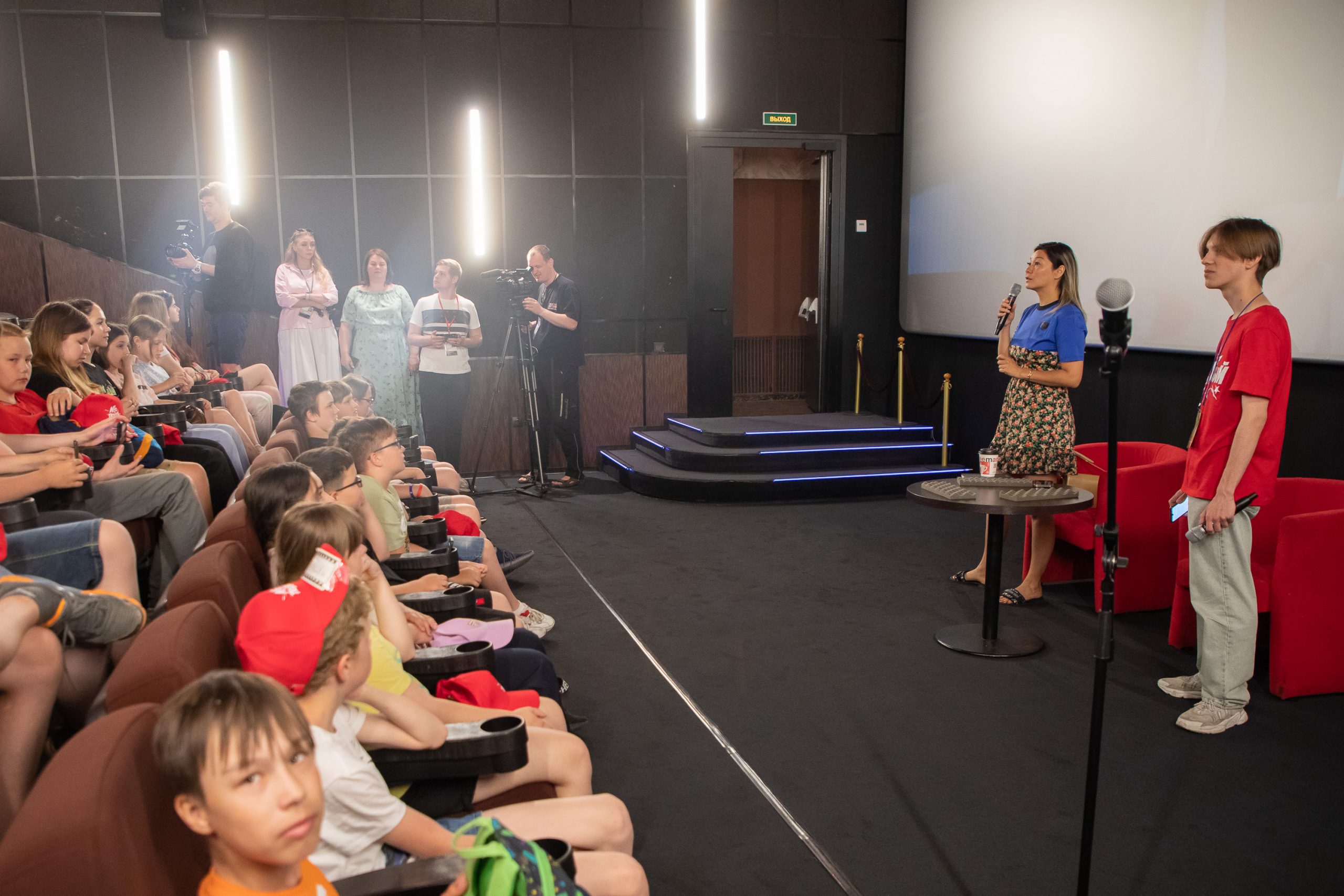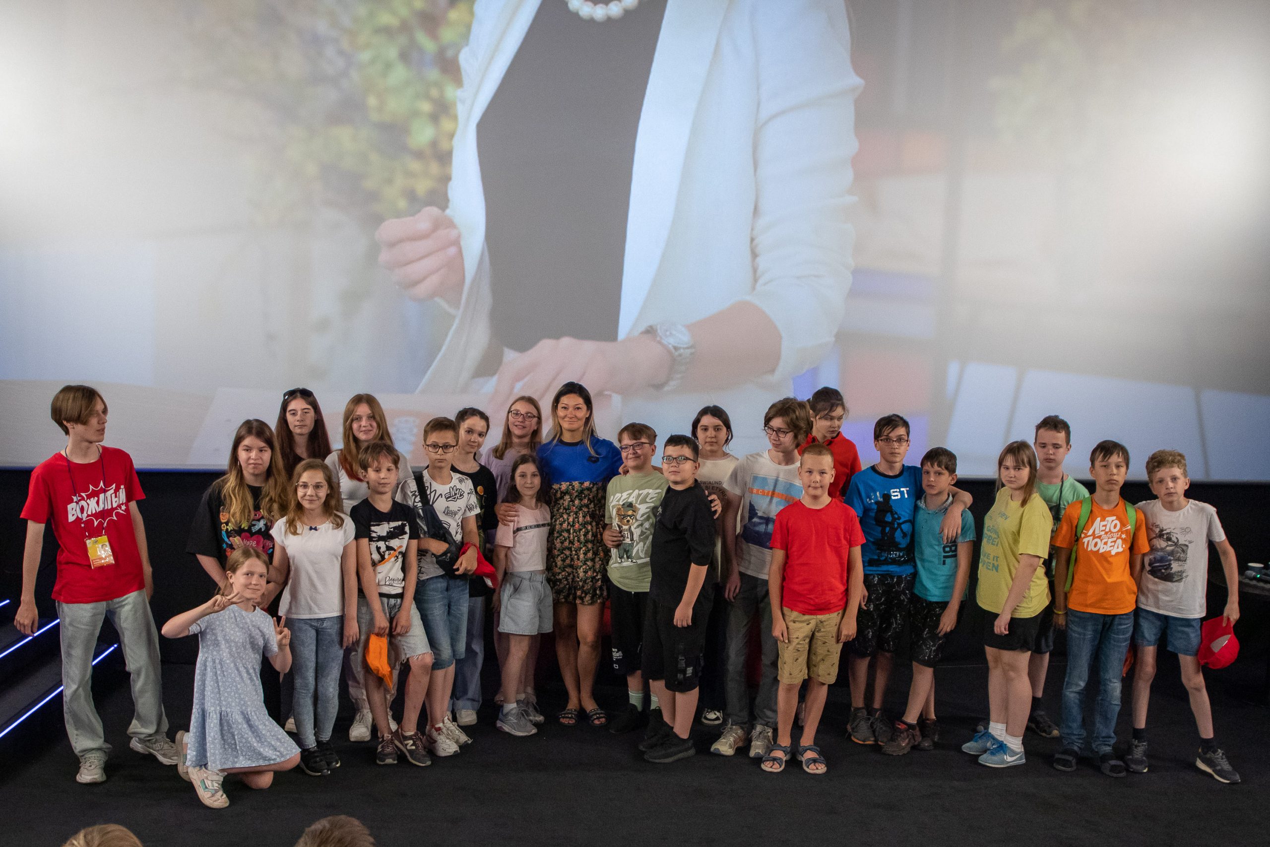 «Здравствуйте, ребята, очень рада вас видеть здесь, вы, как мне сказали, участники медианаправления, то есть хотите быть блогерами, журналистами, это прекрасно. Мои дети тоже ходили в клуб «Лето Побед» на две смены, здесь очень здорово, всем все понравилось, вам-то, как здесь, нравится?» — обратилась к участникам встречи Марина Ким.