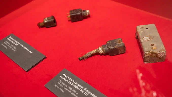 «Посетили увидят фрагменты немецкой трофейной техники. Это детали электрооборудования самолетов — пикирующего бомбардировщика Юнкерс Ju-88 и среднего бомбардировщика Хейнкель He-111», — рассказала куратор выставки, специалист отдела художественных проектов Музея Победы Елена Ремизова.