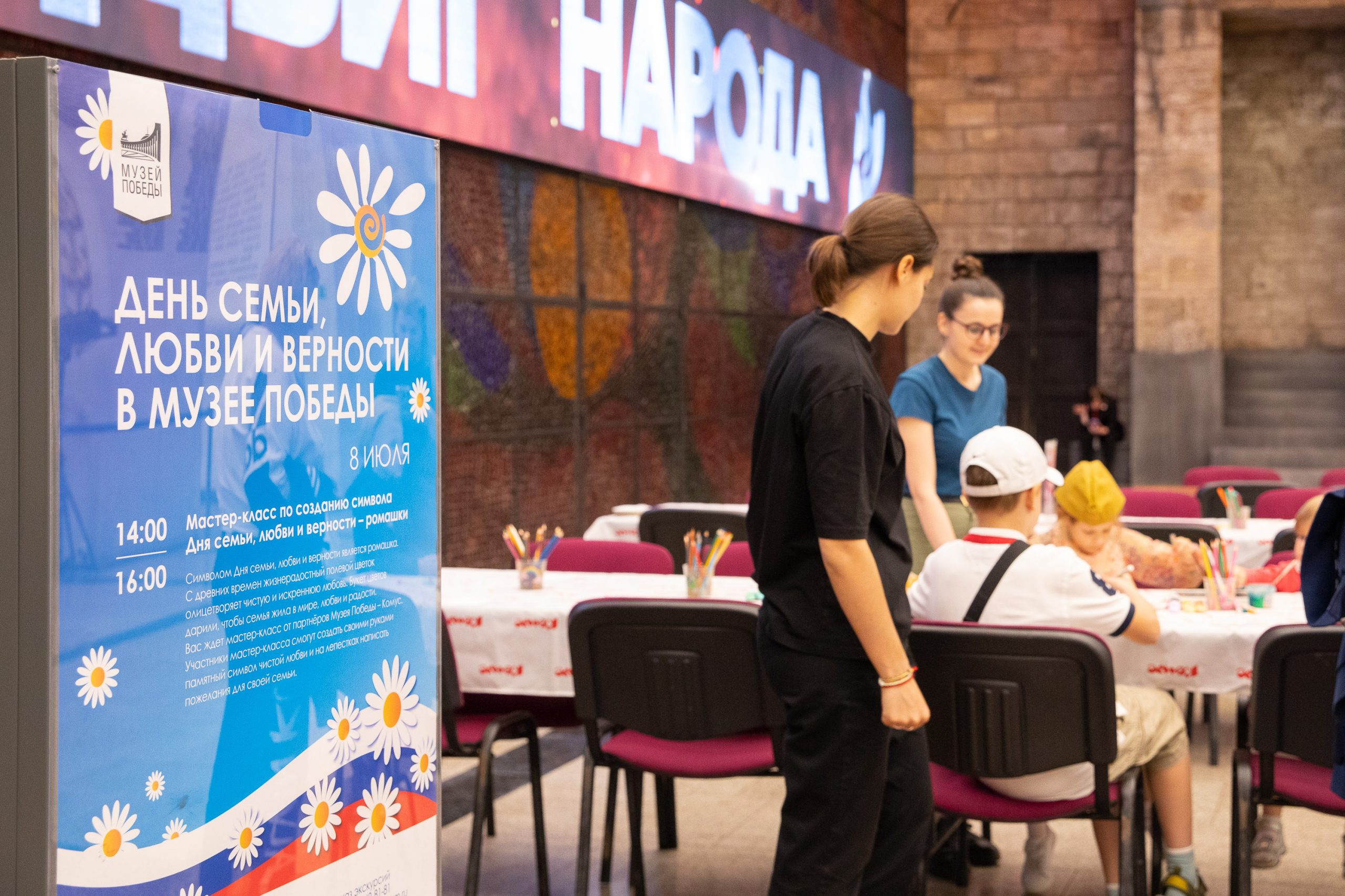 В Музее Победы состоялся мастер-класс по созданию символа Дня семьи, любви и верности — ромашки.