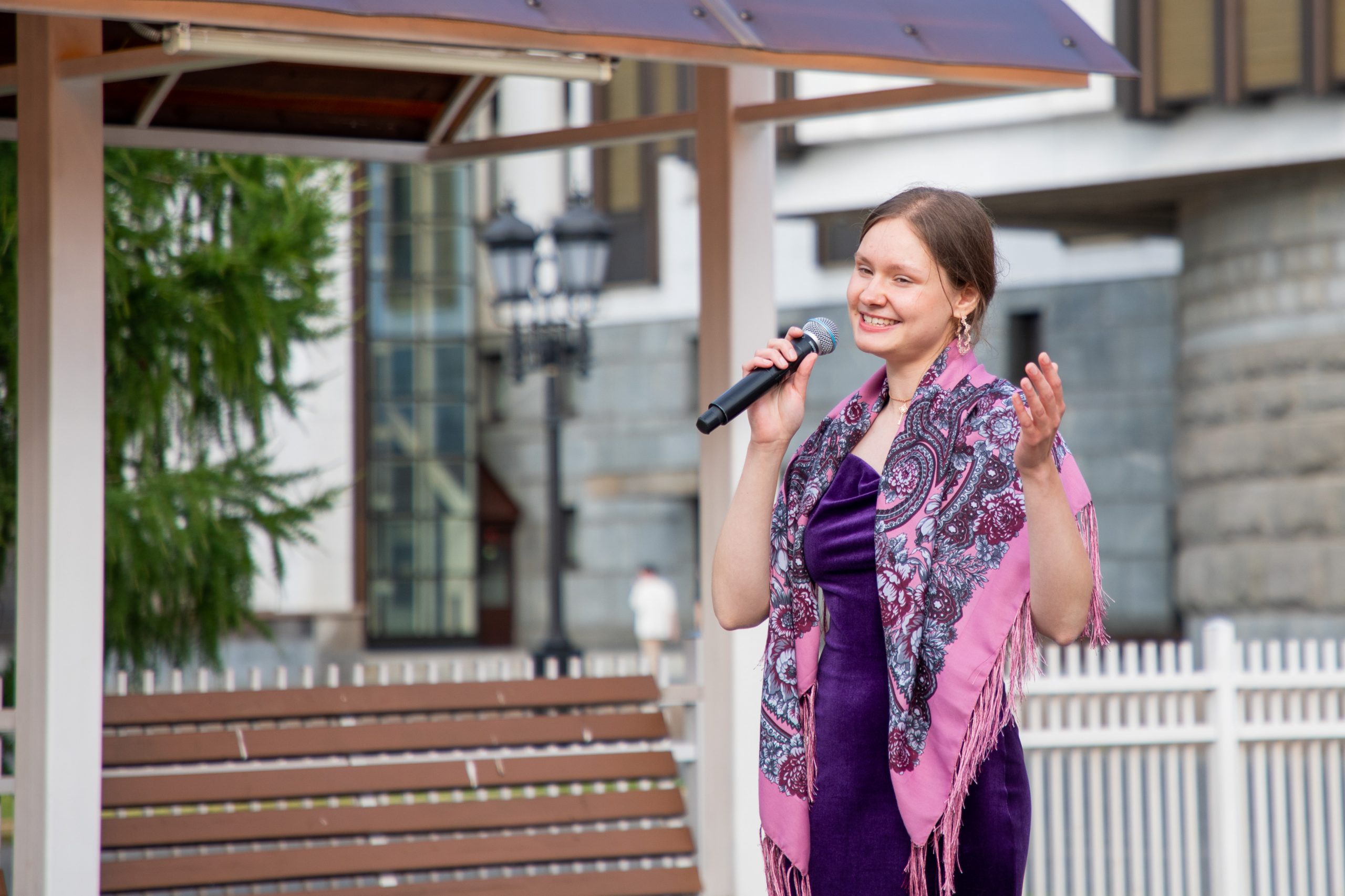 «Любовь к фольклору во мне воспитала бабушка. Именно она познакомила меня с народными песнями, которые я полюбила. Они передают зерна любви и мудрости народного фольклора, наши традиции, которые нужно воспитывать в молодых поколениях. Внутри у меня большая радость от того, что меня пригласили выступить в Парке Победы на такой уютной площадке, где я смогла подарить зрителям частичку себя», — отметила она.