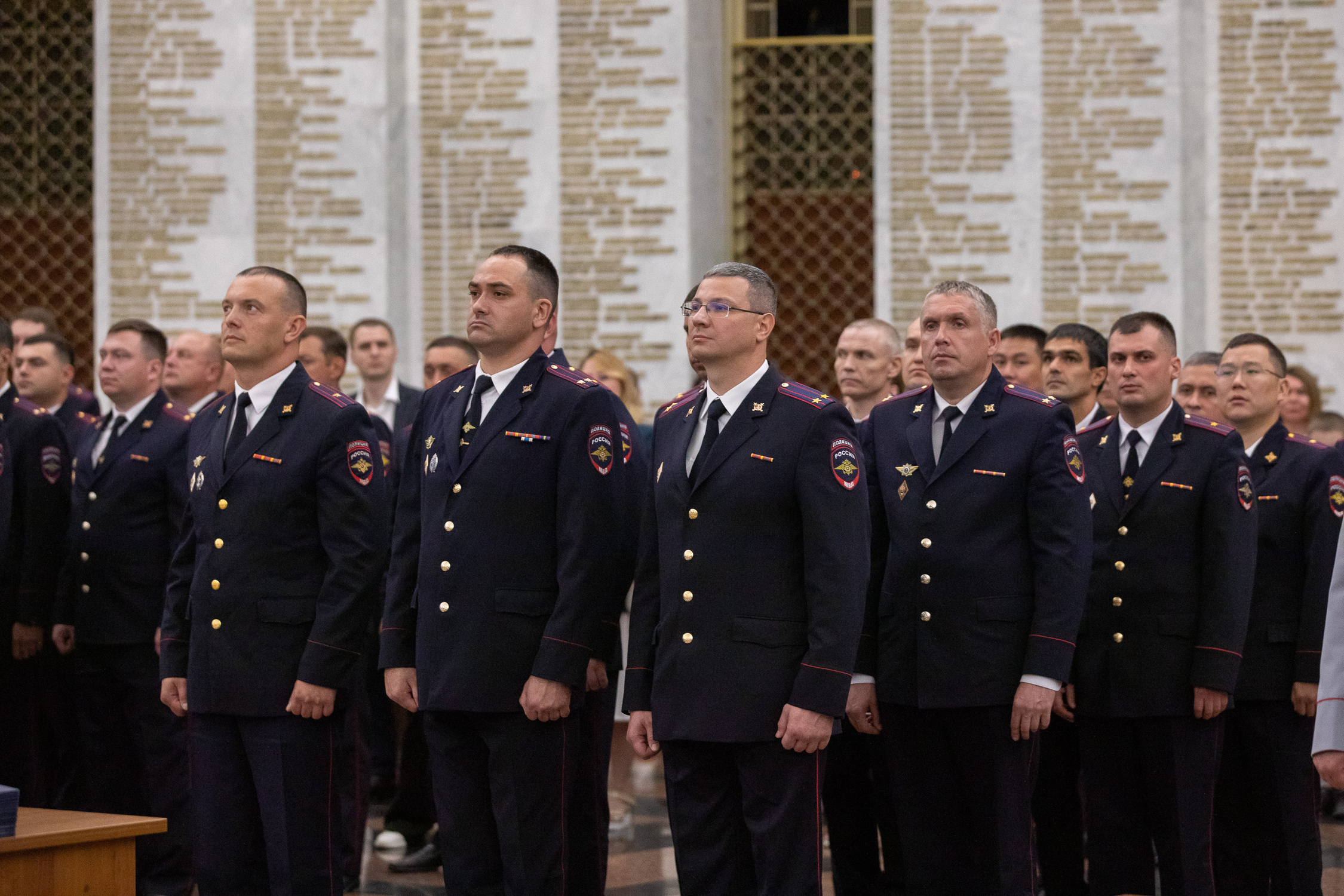 «Вы приступаете к исполнению служебных обязанностей в крайне сложный и ответственный период для России. Во все времена российский народ отличали любовь к своей родине, сплоченность перед лицом общей угрозы и готовность выдержать самые тяжелые испытания. Именно эти качества определяют достижение наших побед, так было всегда и так будет и впредь. Выражаю уверенность в том, что какая бы обстановка ни была, вы проявите лучшие качества солдата правопорядка — преданность своему Отечеству, высокий профессионализм», — сказал заместитель Министра.