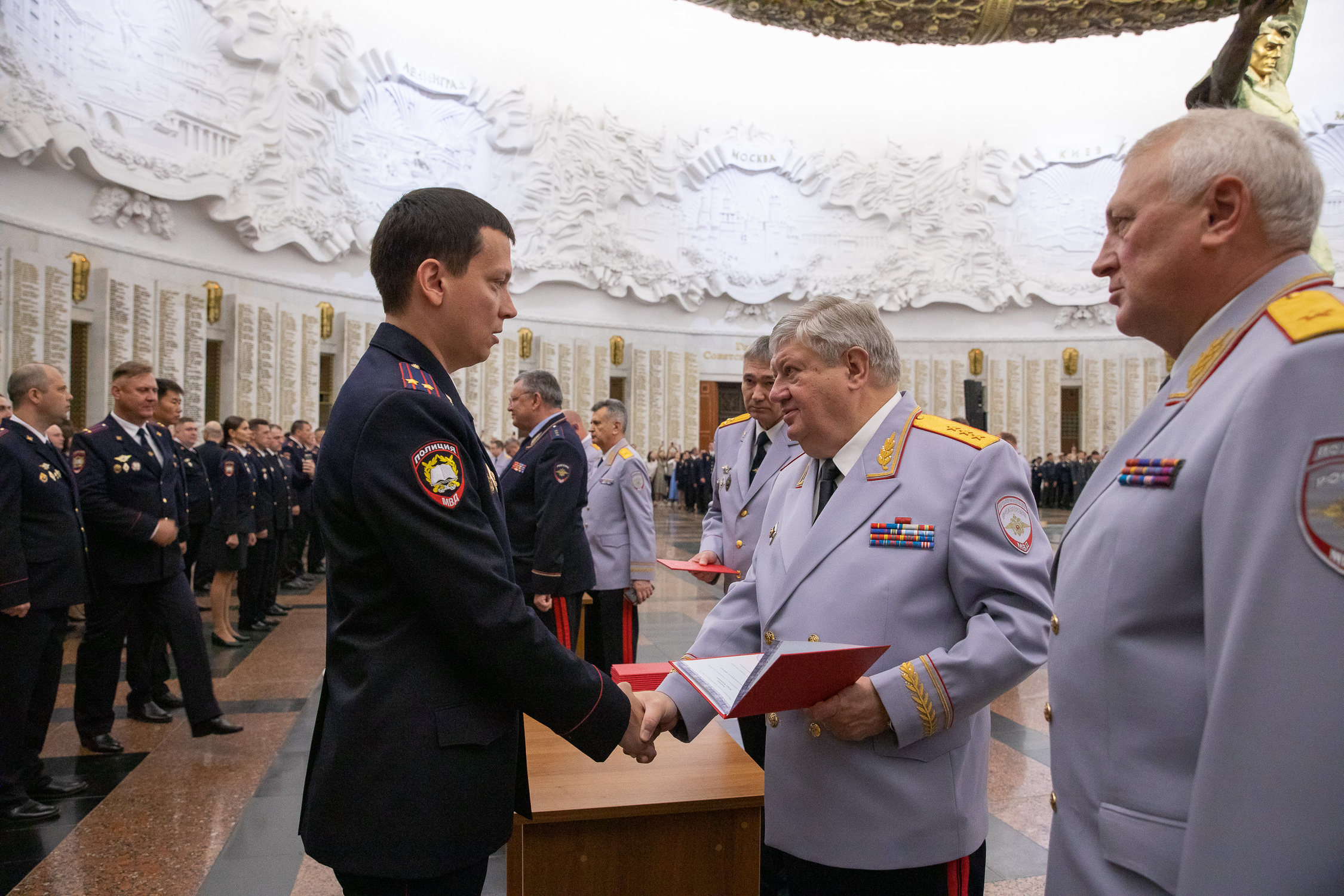 В Музее Победы прошла церемония вручения дипломов выпускникам Академии управления МВД России. Дипломы вручил заместитель Министра внутренних дел Российской Федерации генерал-полковник полиции Владимир Кубышко. Торжественная церемония состоялась в Зале Славы. По традиции поддержать выпускников пришли их родные и близкие.