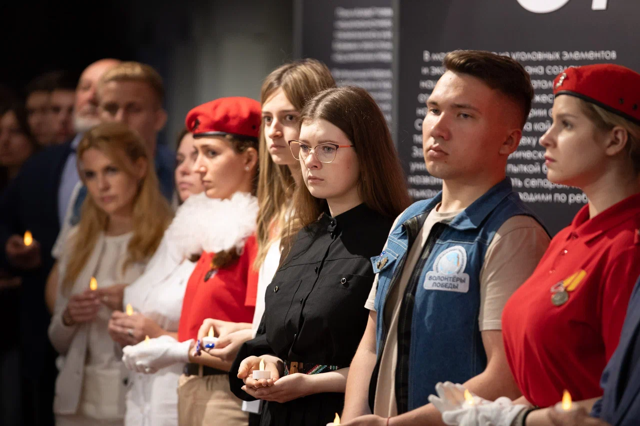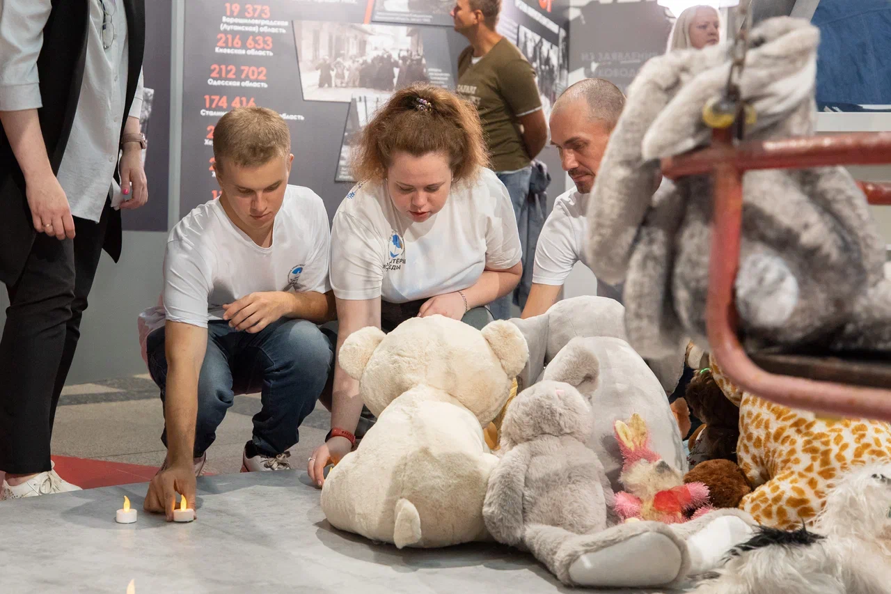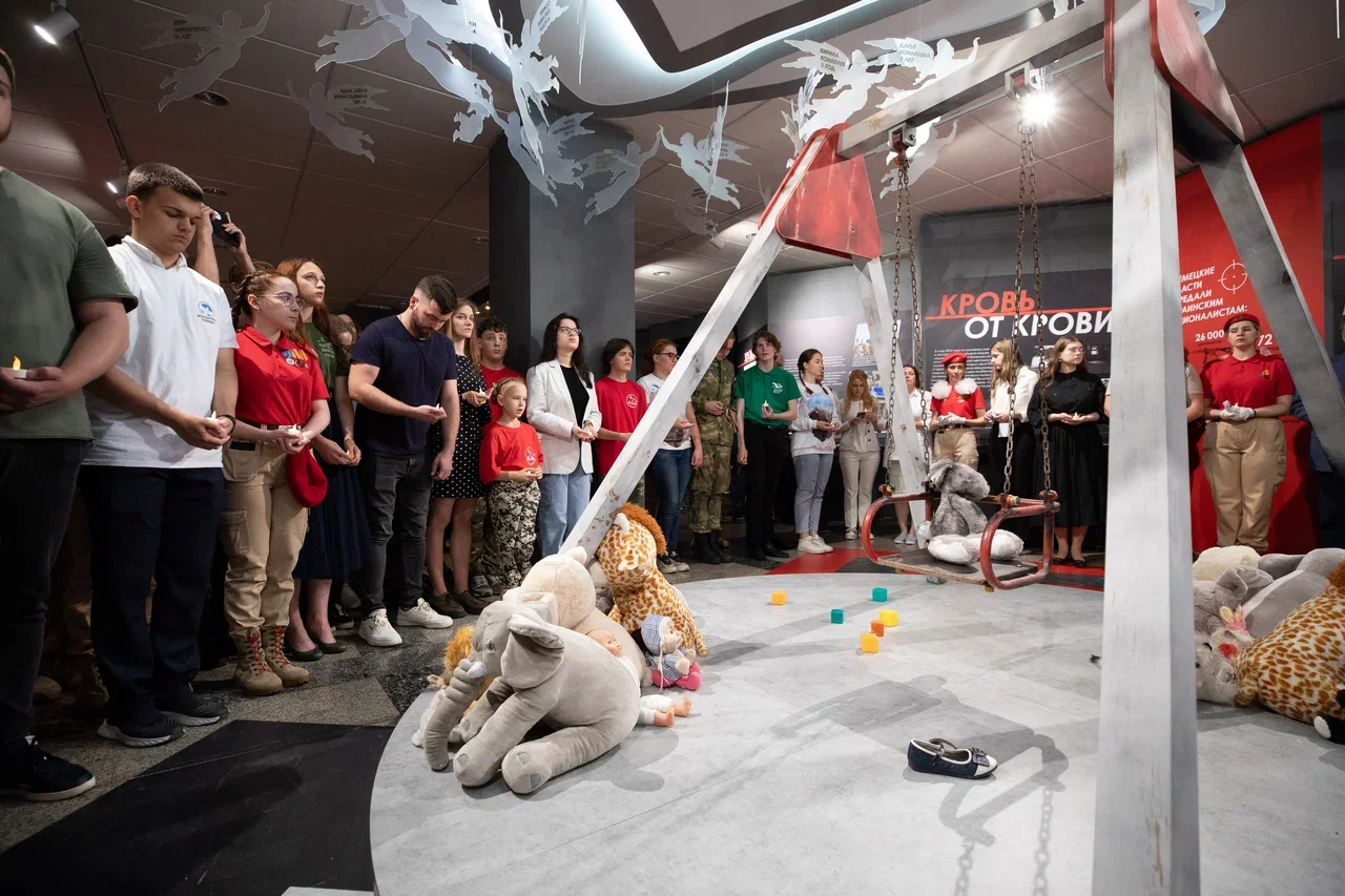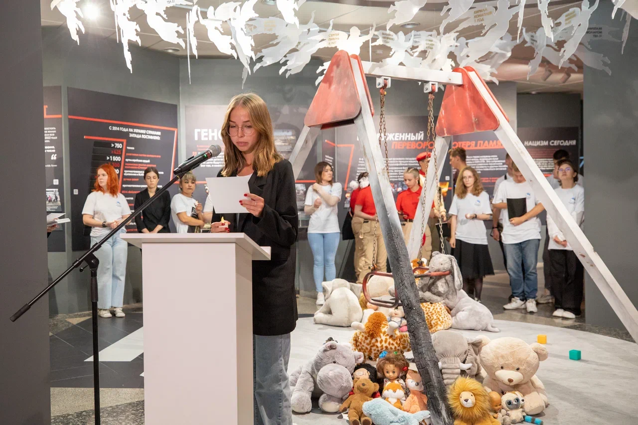 У инсталляции «Аллея ангелов», расположенной в экспозиции «Обыкновенный нацизм», государственные и общественные деятели, а также участники Всероссийского детско-юношеского движения «Юнармия», «Движения Первых», волонтеры Музея Победы, активисты движений «Волонтеры Победы» и «Бессмертный полк России» зачитали имена погибших детей. В Зале Памяти и Скорби участники возложили цветы.