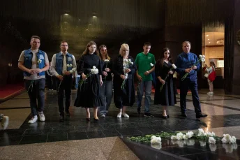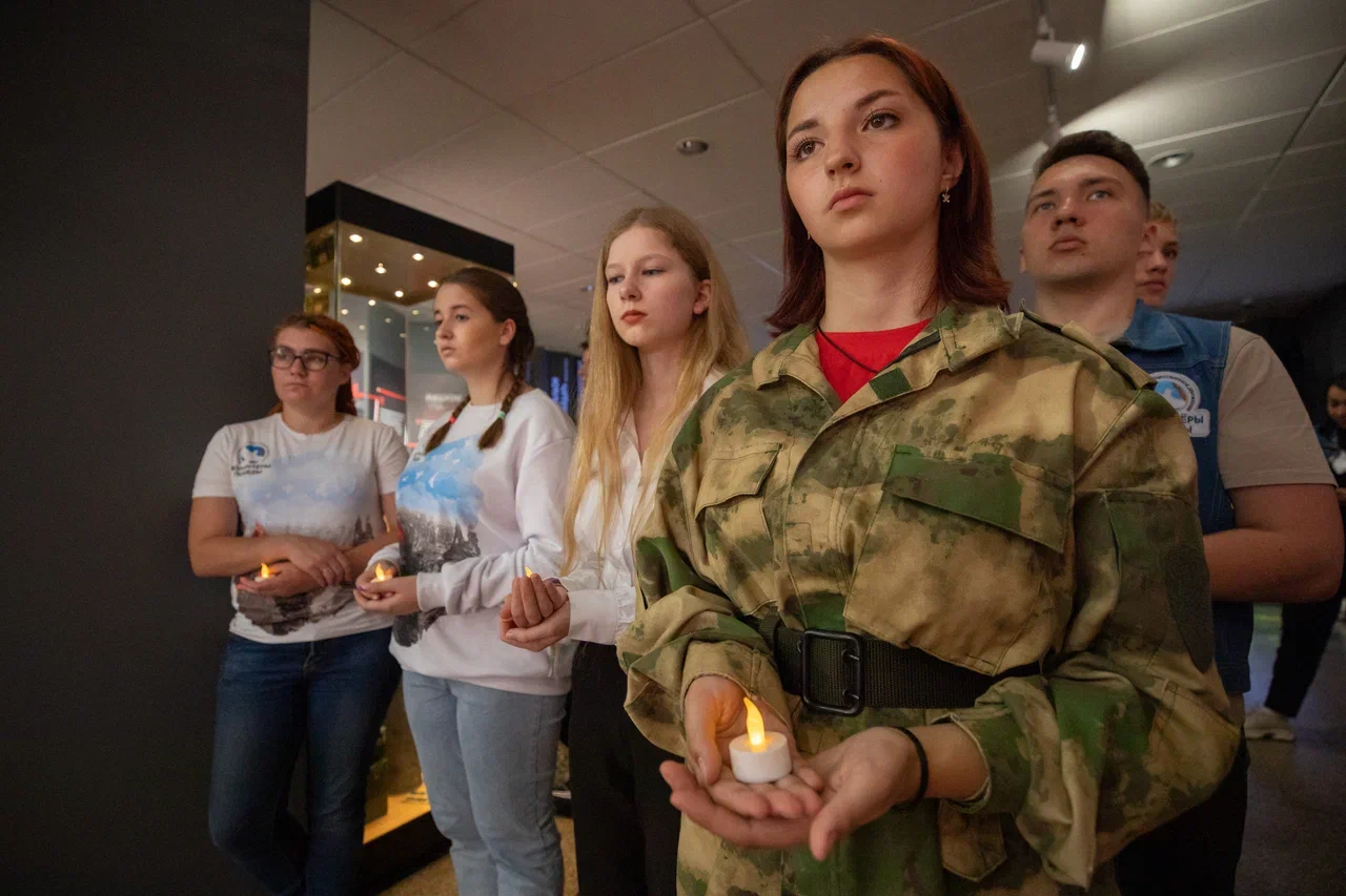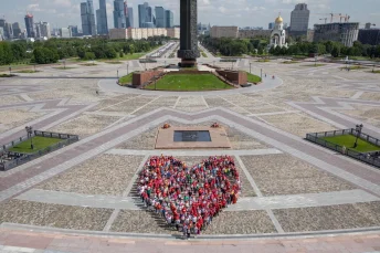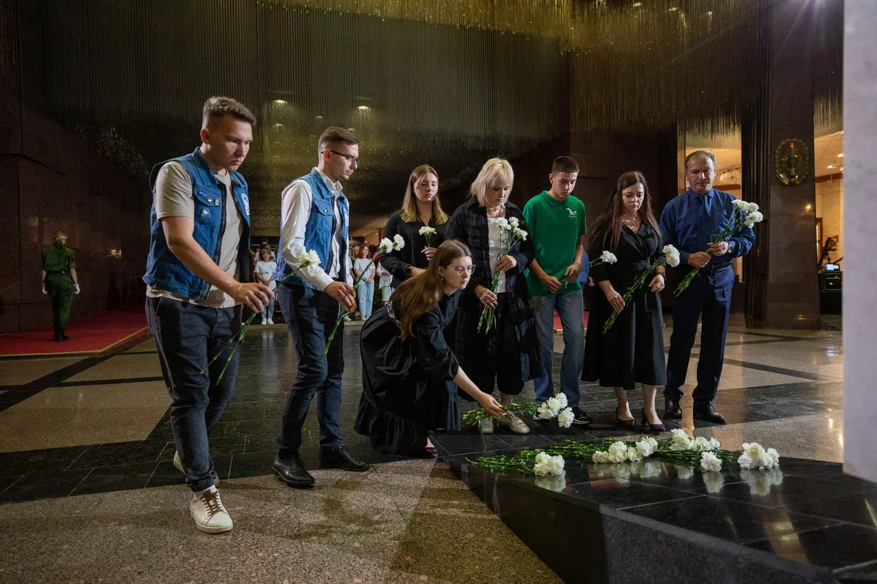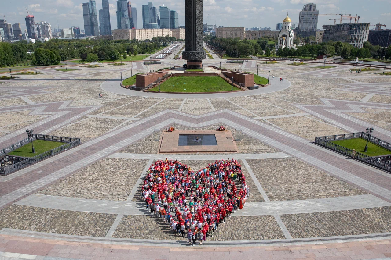 Кроме того, в рамках мероприятия на площади перед Музеем Победы участники детского городского клуба «Лето Побед» провели памятный флешмоб. Они выстроились в форме большого сердца в знак единения и скорби детских сердец всей страны.